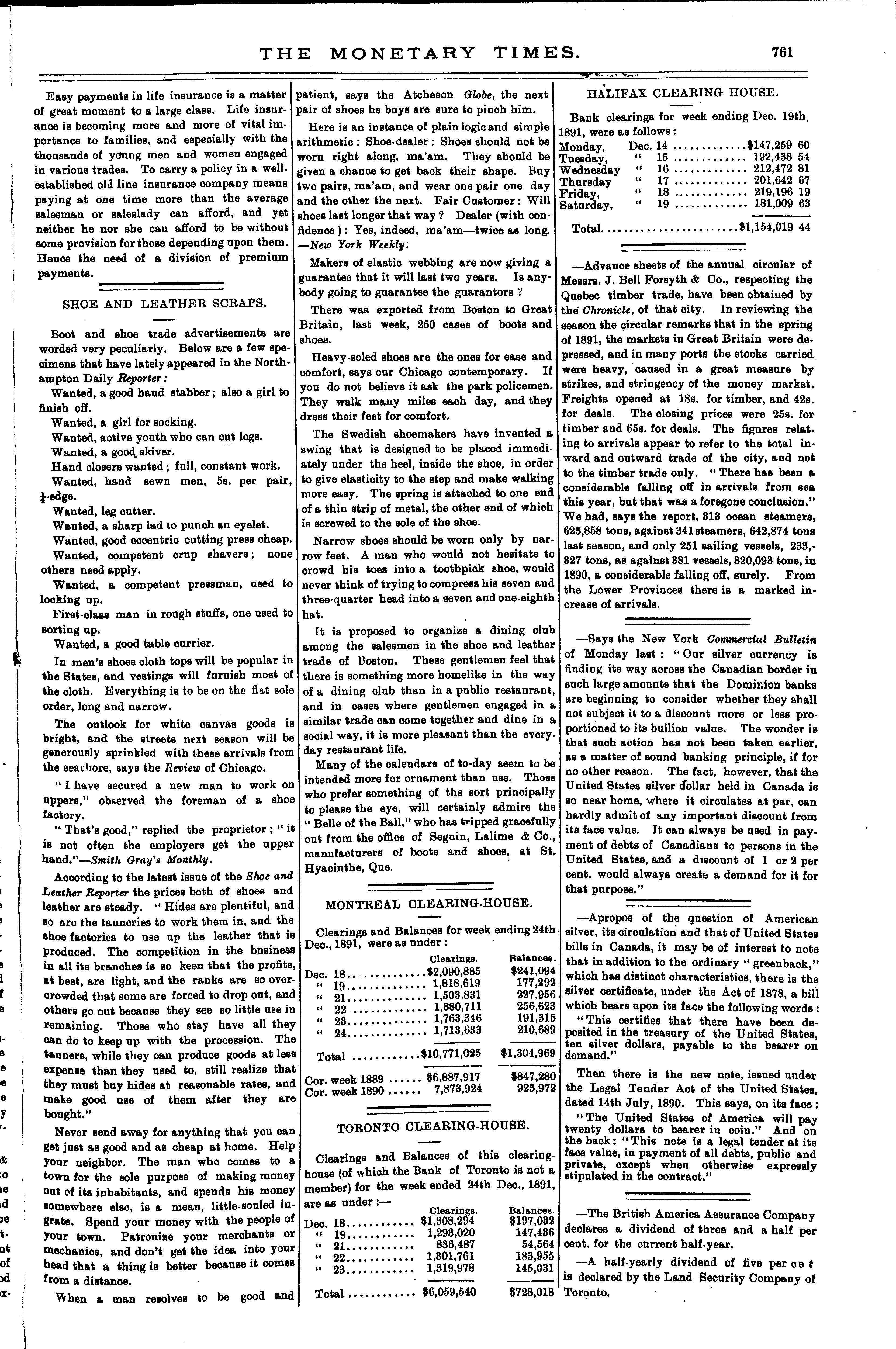 The monetary times, trade review and insurance chronicle : [Vol. 25, no. 26 (Dec. 25, 1891)]