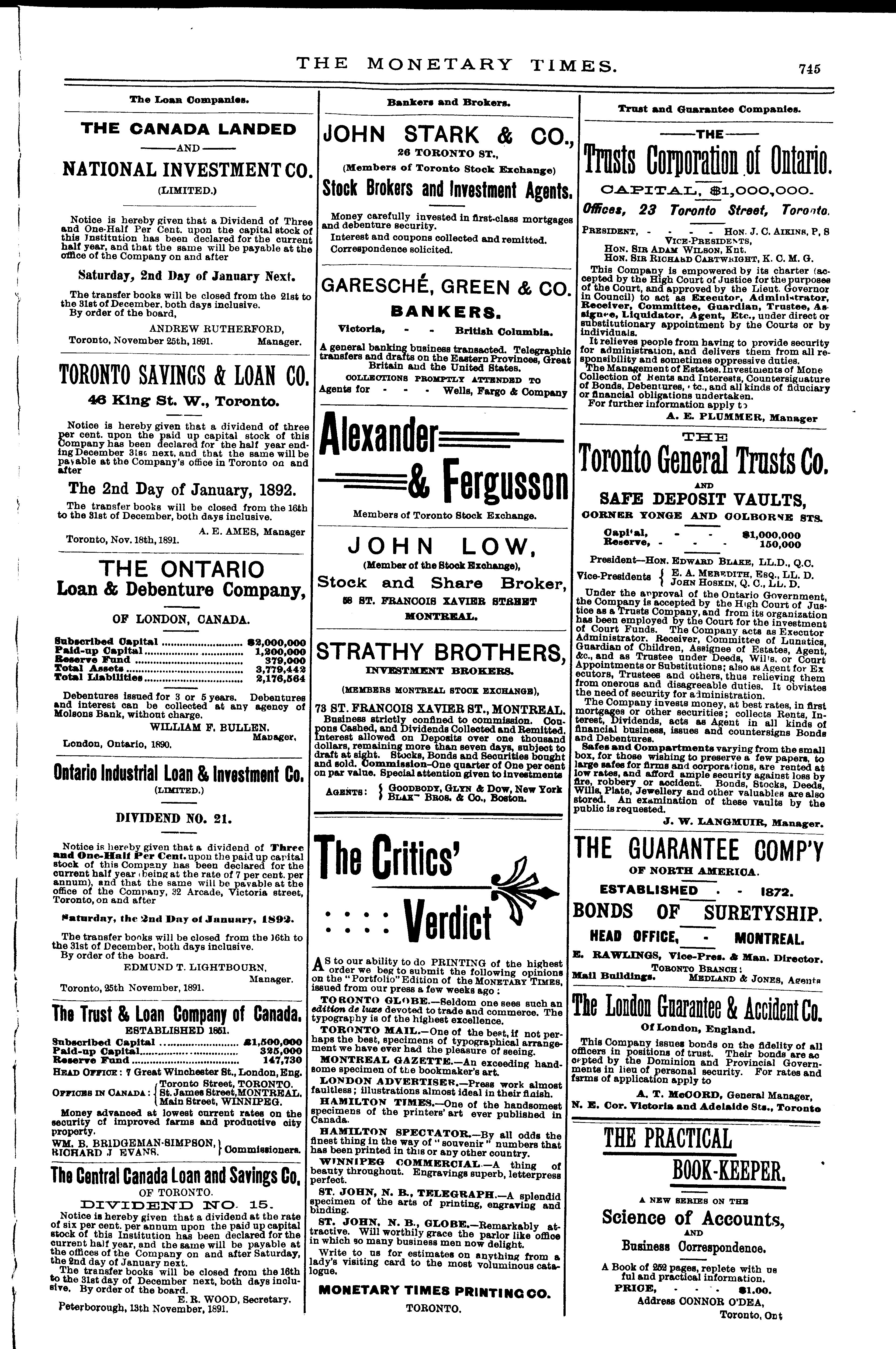 The monetary times, trade review and insurance chronicle : [Vol. 25, no. 26 (Dec. 25, 1891)]
