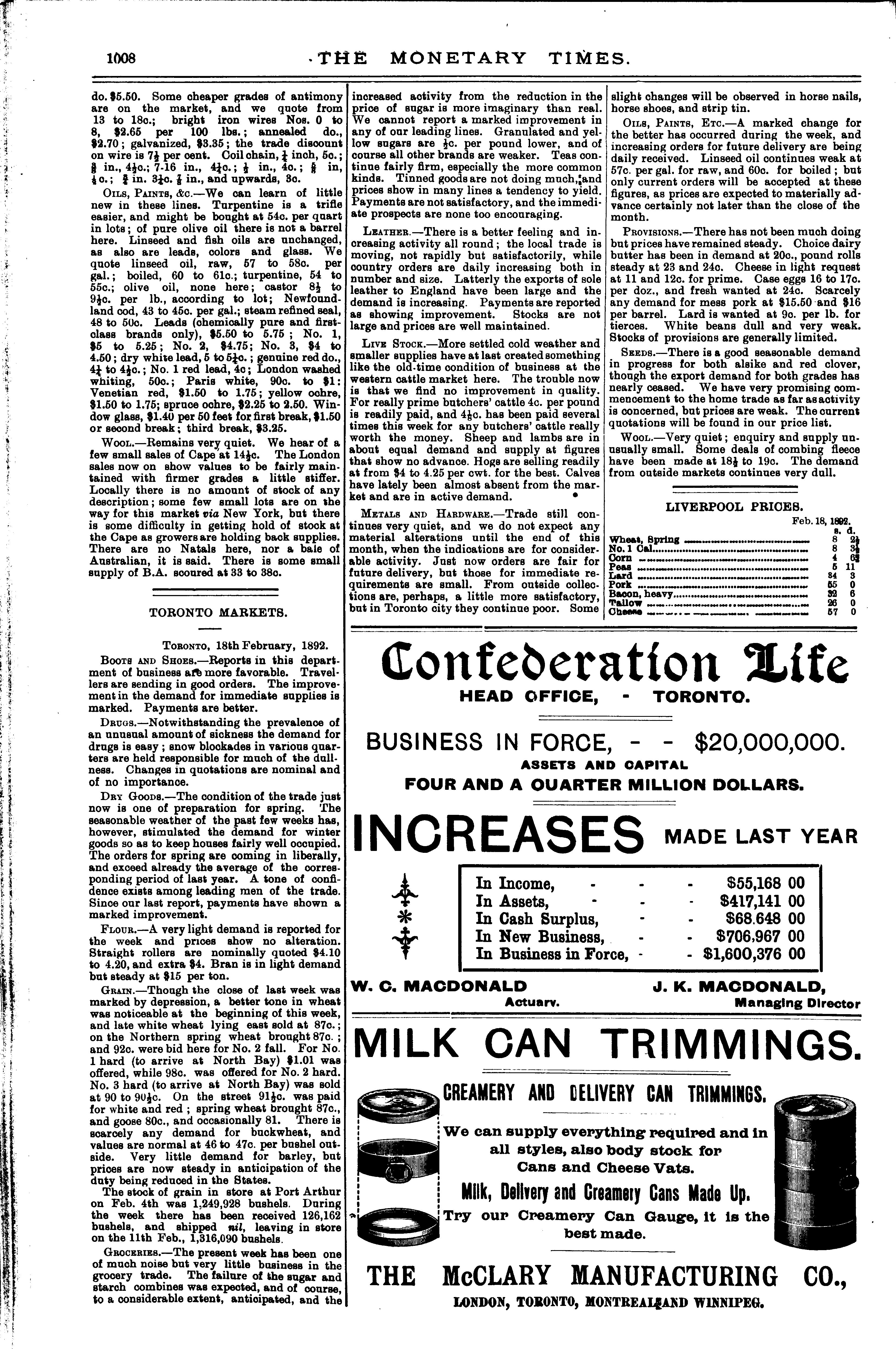 The monetary times, trade review and insurance chronicle : [Vol. 25, no. 34] (Feb. 19, 1892)]