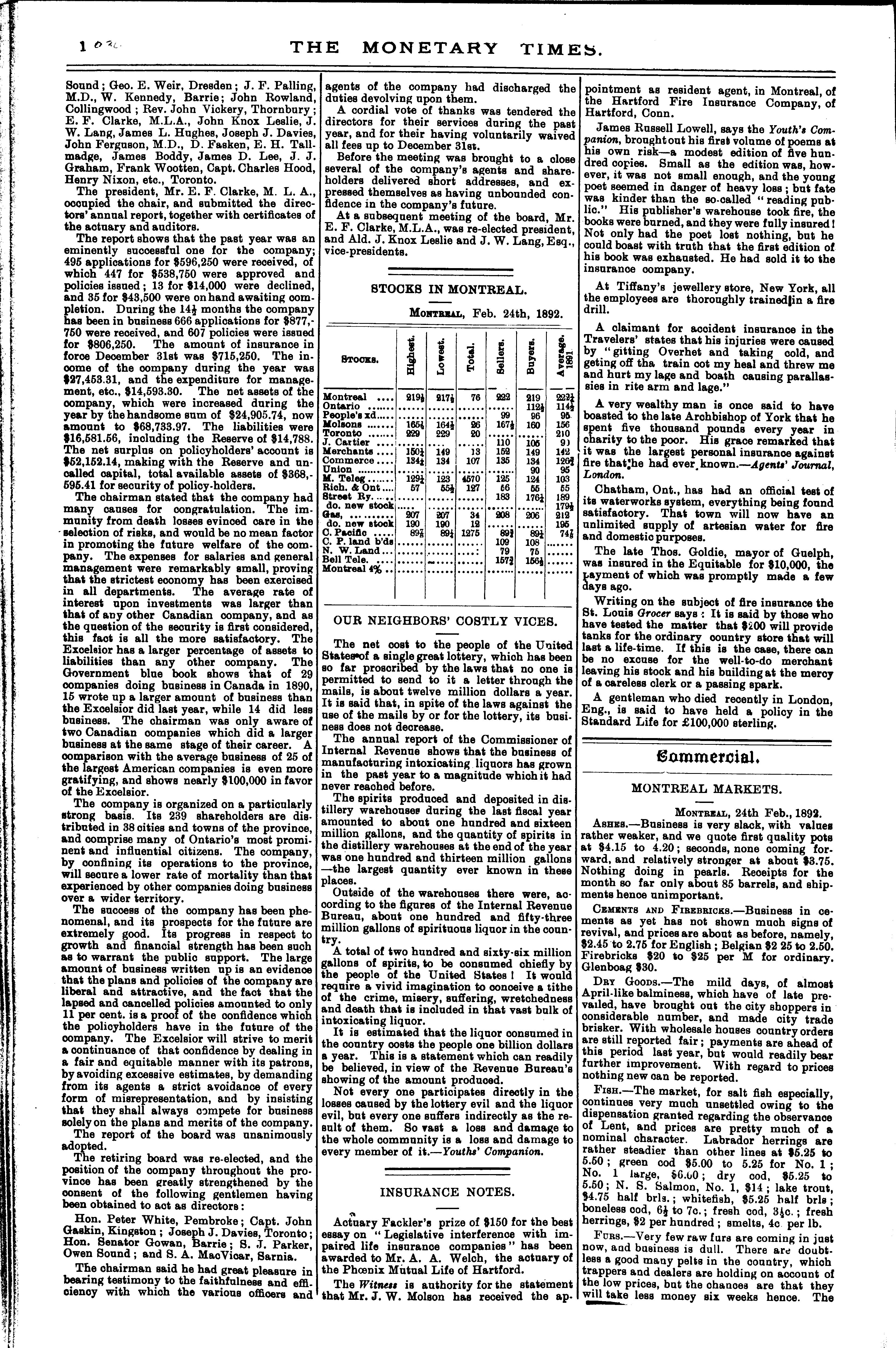 The monetary times, trade review and insurance chronicle : [Vol. 25, no. 35] (Feb. 26, 1892)]