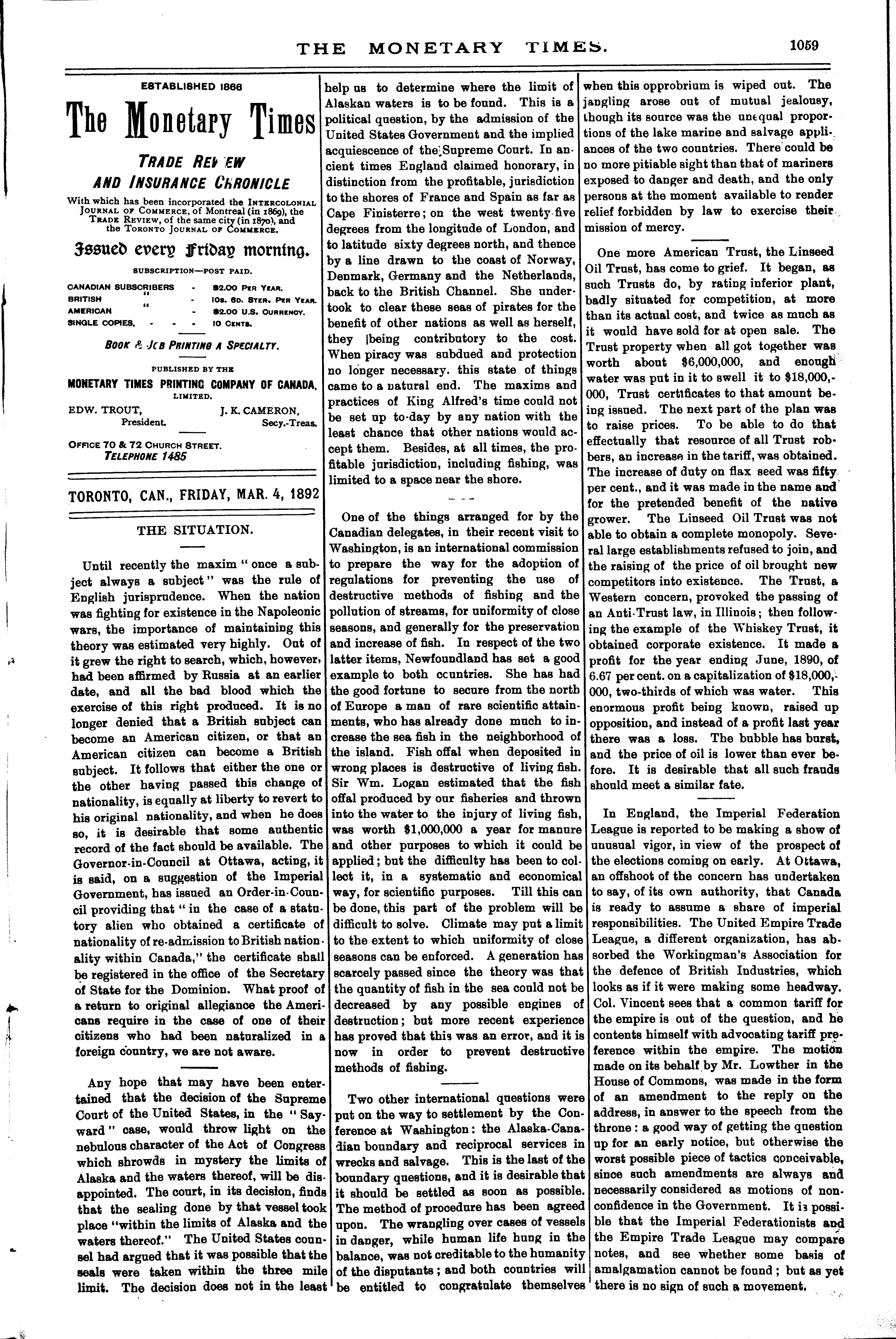 The monetary times, trade review and insurance chronicle : [Vol. 25, no. 36] (Mar. 4, 1892)]