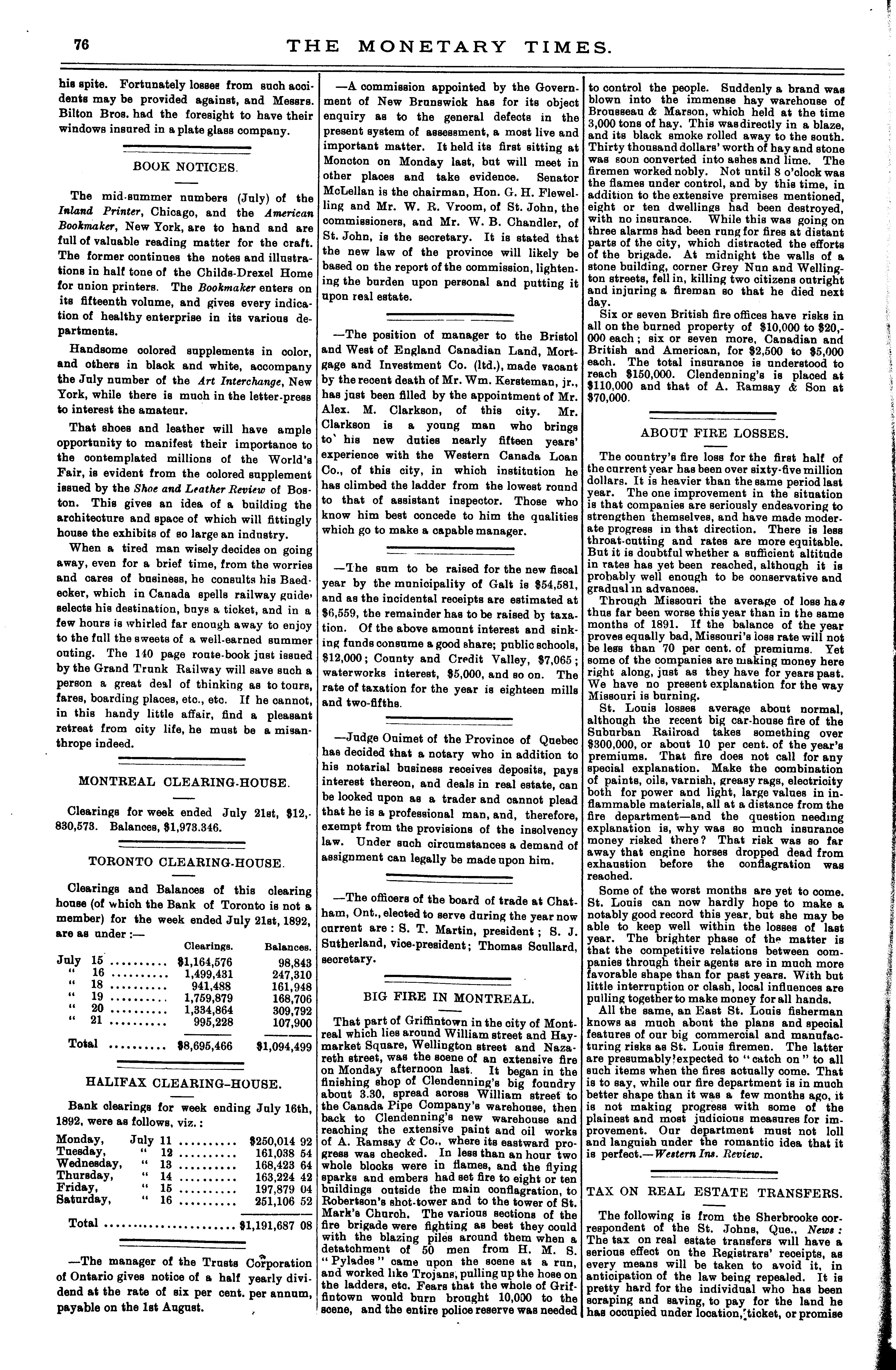 The monetary times, trade review and insurance chronicle : [Vol. 26, no. 3 (July 22, 1892)]