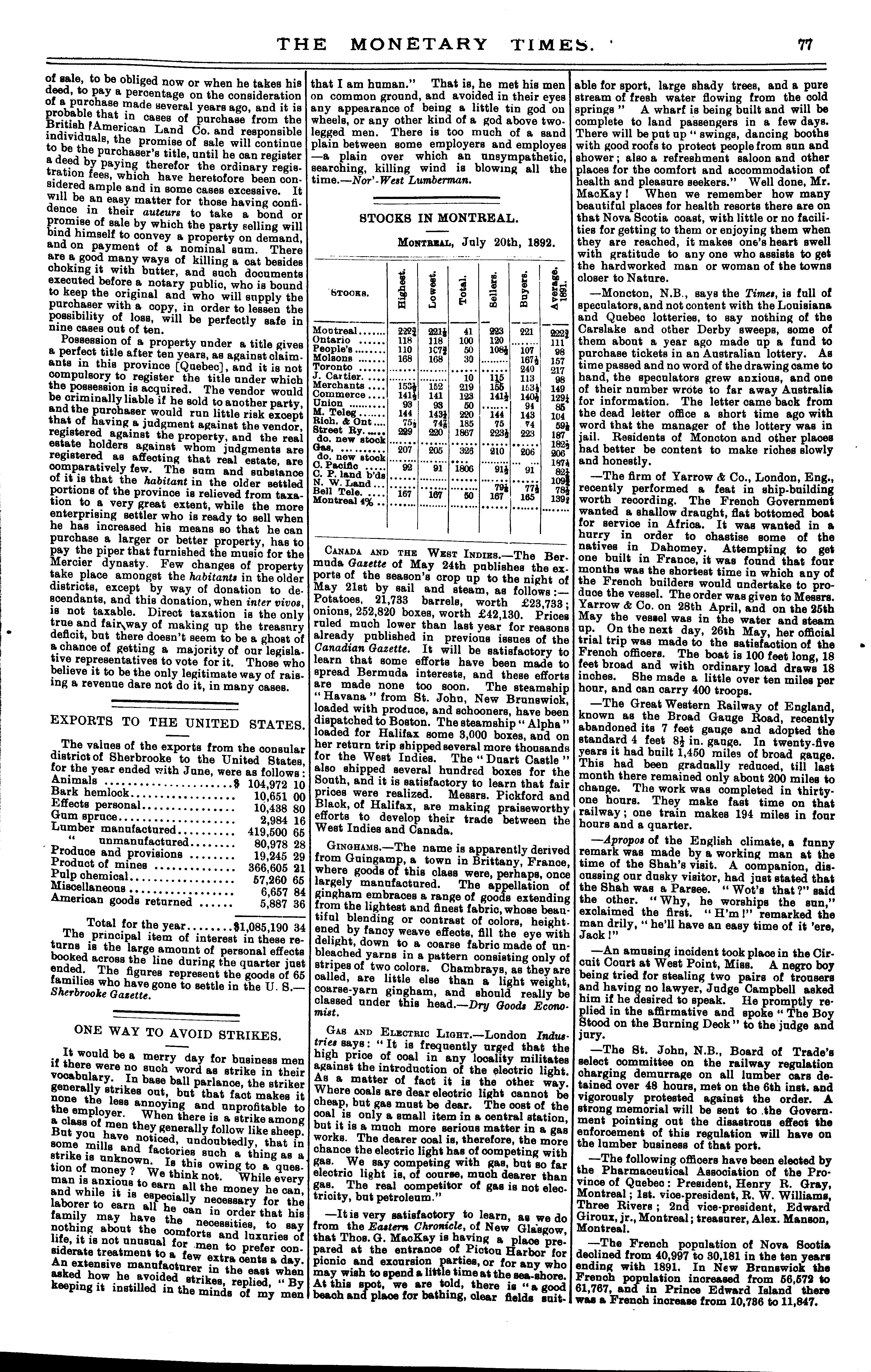 The monetary times, trade review and insurance chronicle : [Vol. 26, no. 3 (July 22, 1892)]
