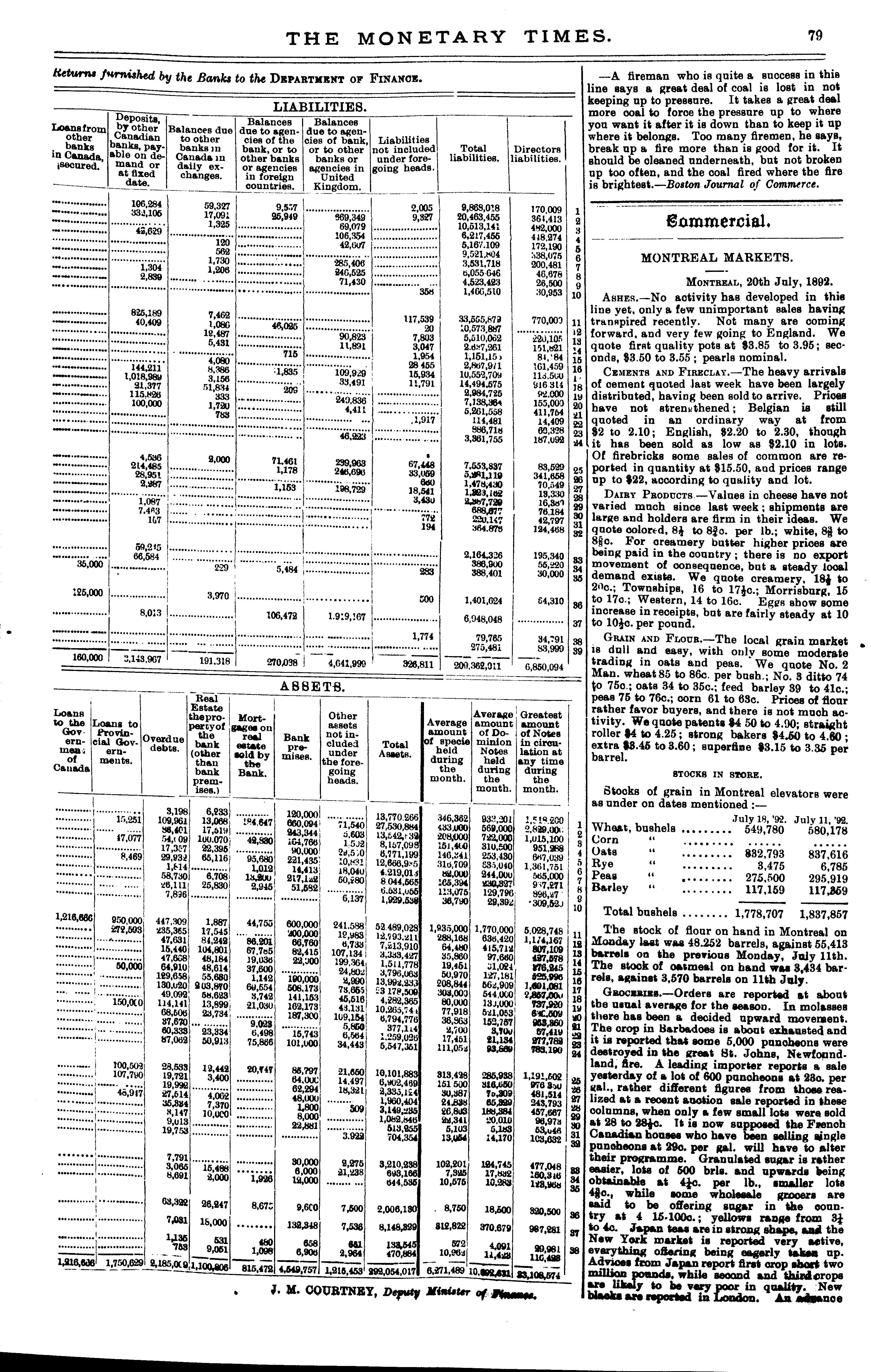 The monetary times, trade review and insurance chronicle : [Vol. 26, no. 3 (July 22, 1892)]