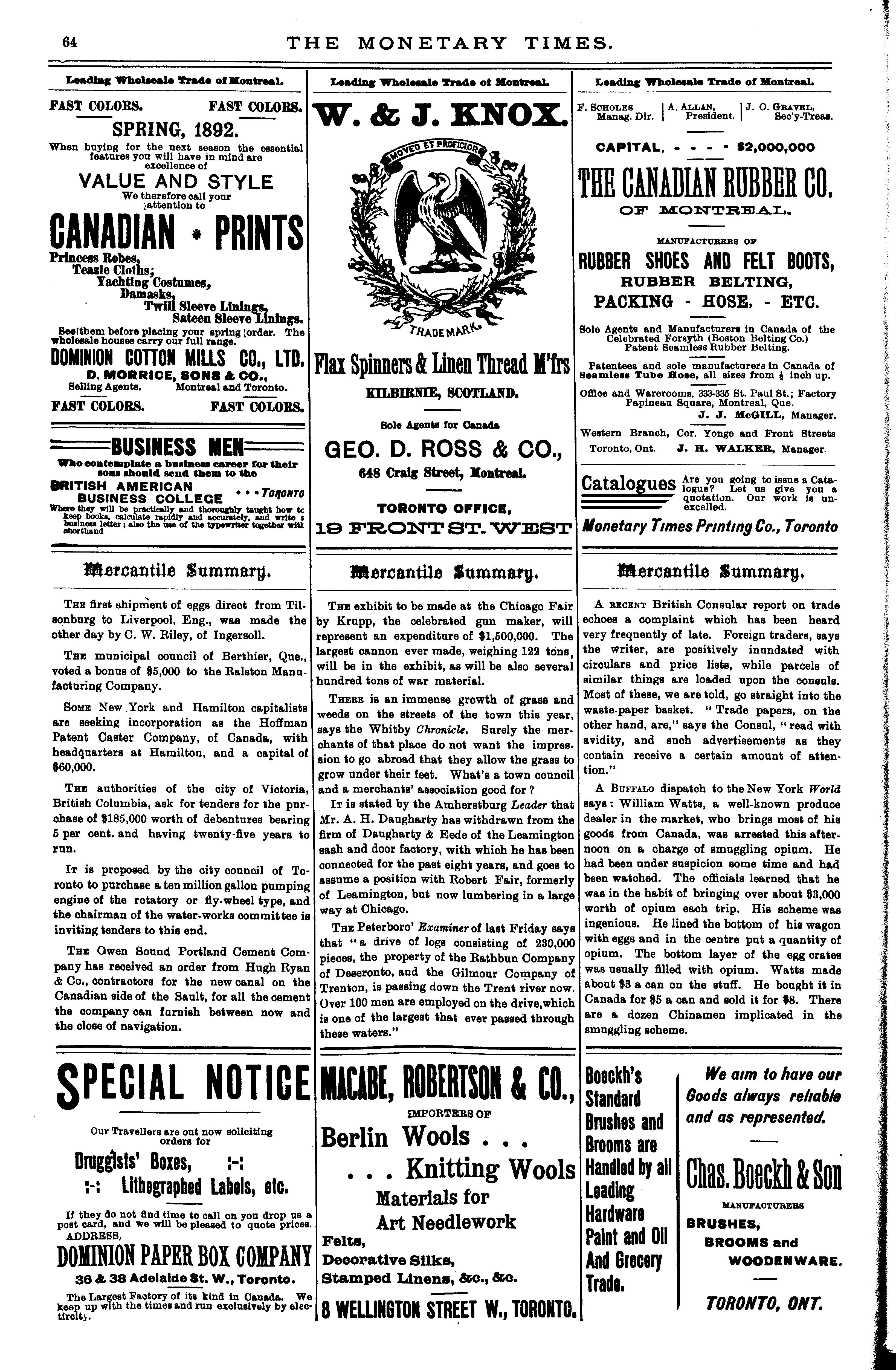 The monetary times, trade review and insurance chronicle : [Vol. 26, no. 3 (July 22, 1892)]