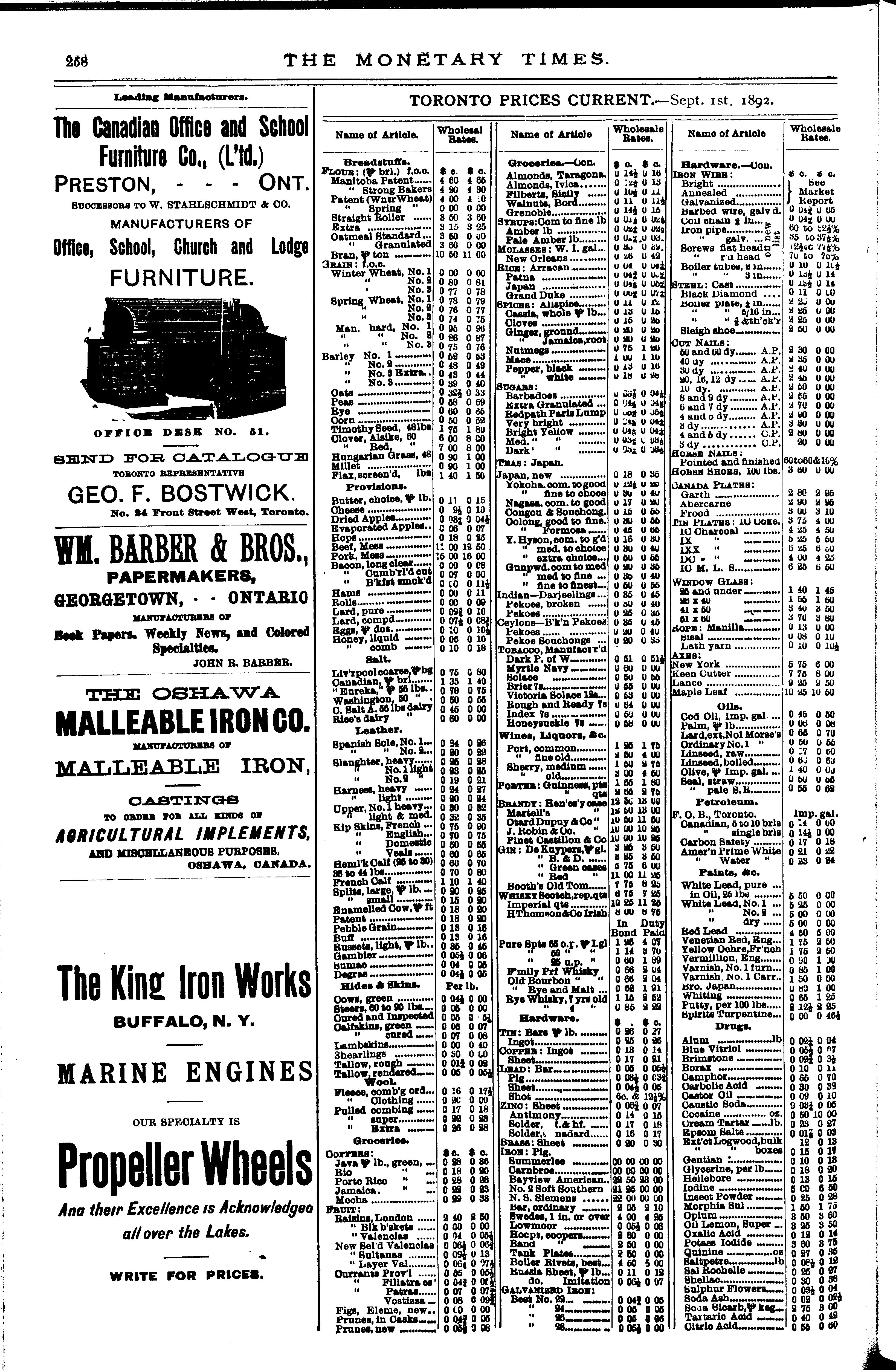 The monetary times, trade review and insurance chronicle : [Vol. 26, no. 9 (Sept. 2, 1892)]