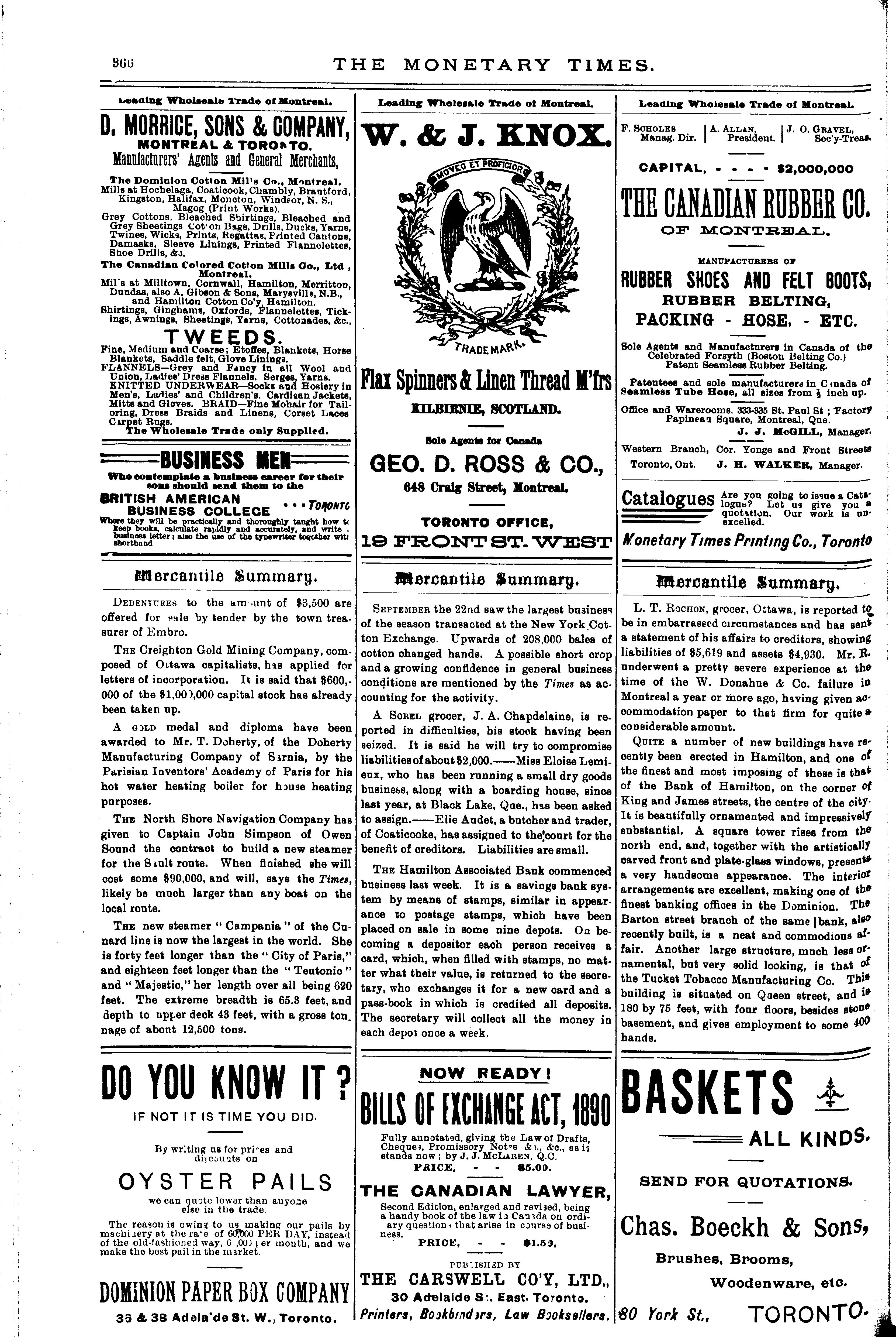 The monetary times, trade review and insurance chronicle : [Vol. 26, no. 13 (Sept. 30, 1892)]