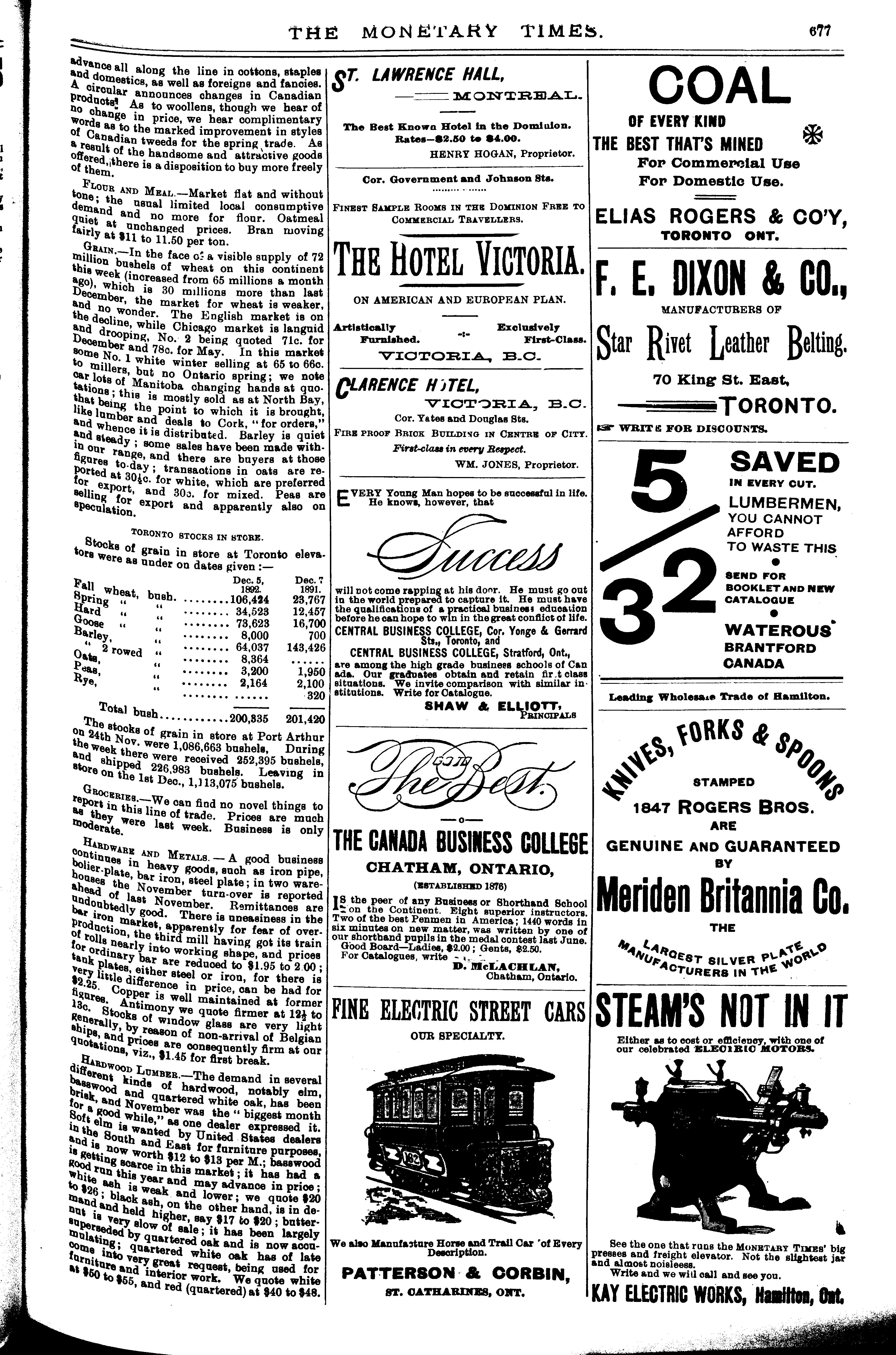 The monetary times, trade review and insurance chronicle : [Vol. 26, no. 23 (Dec. 9, 1892)]