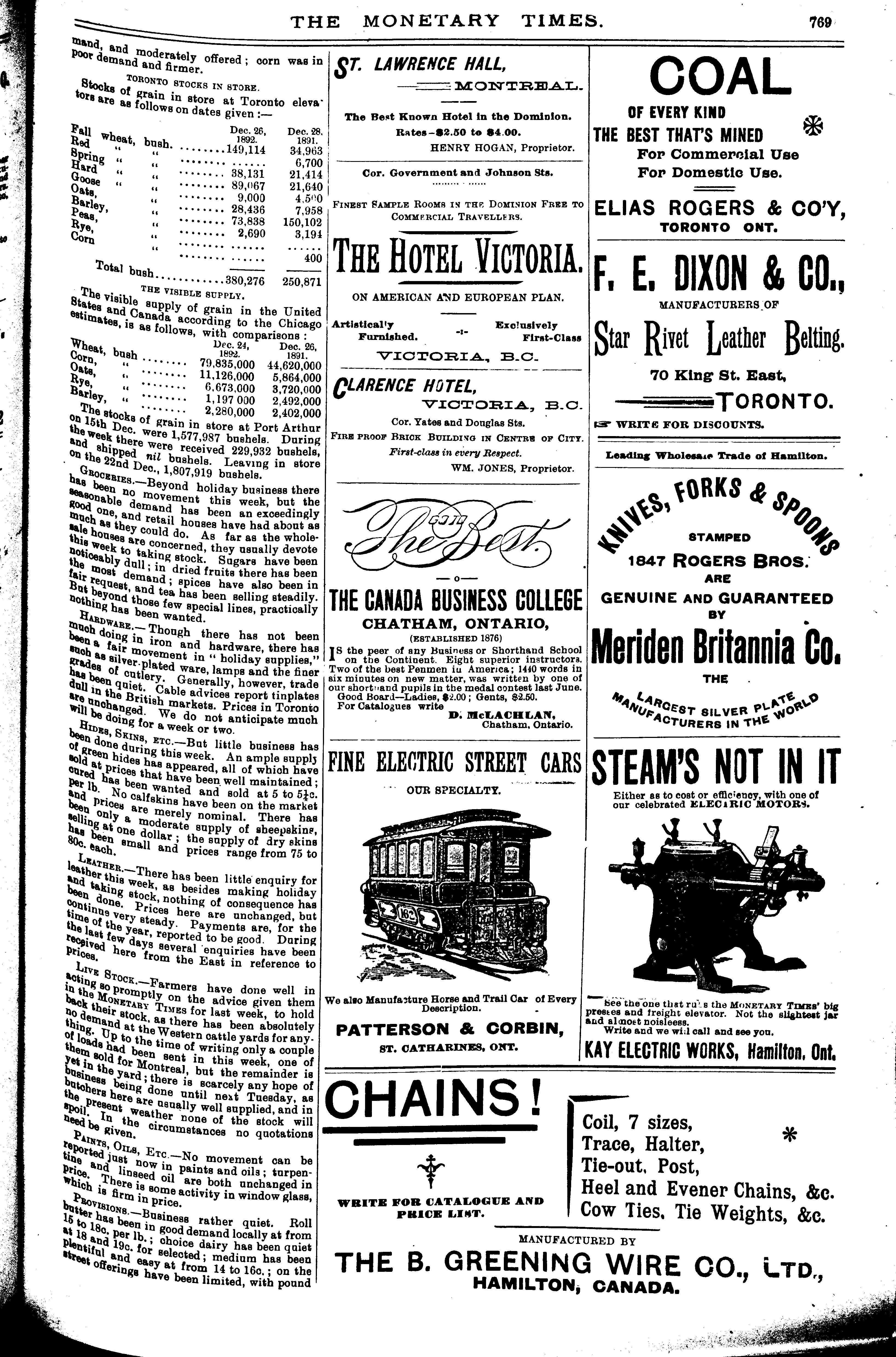 The monetary times, trade review and insurance chronicle : [Vol. 26, no. 26 (Dec. 30, 1892)]