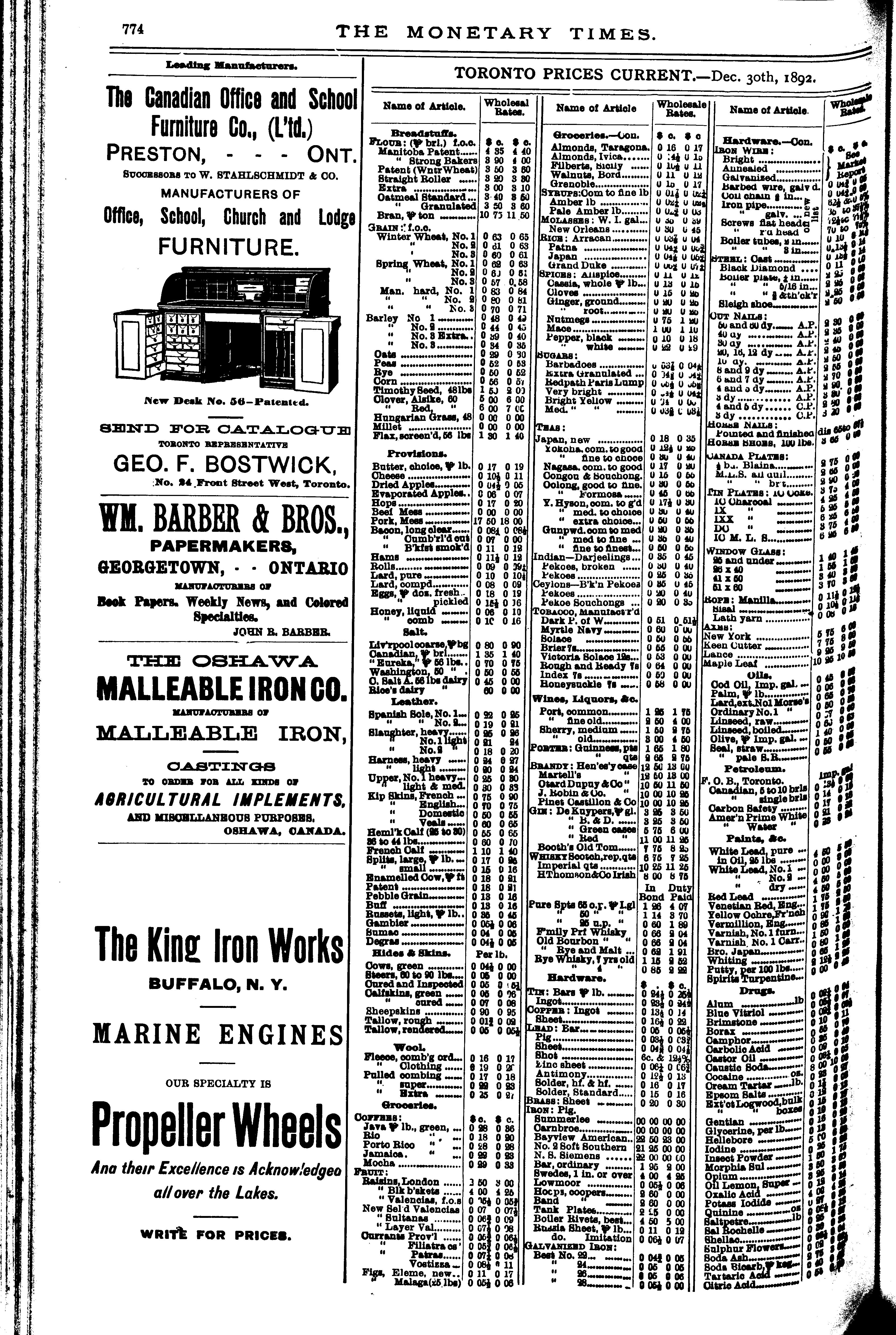 The monetary times, trade review and insurance chronicle : [Vol. 26, no. 26 (Dec. 30, 1892)]