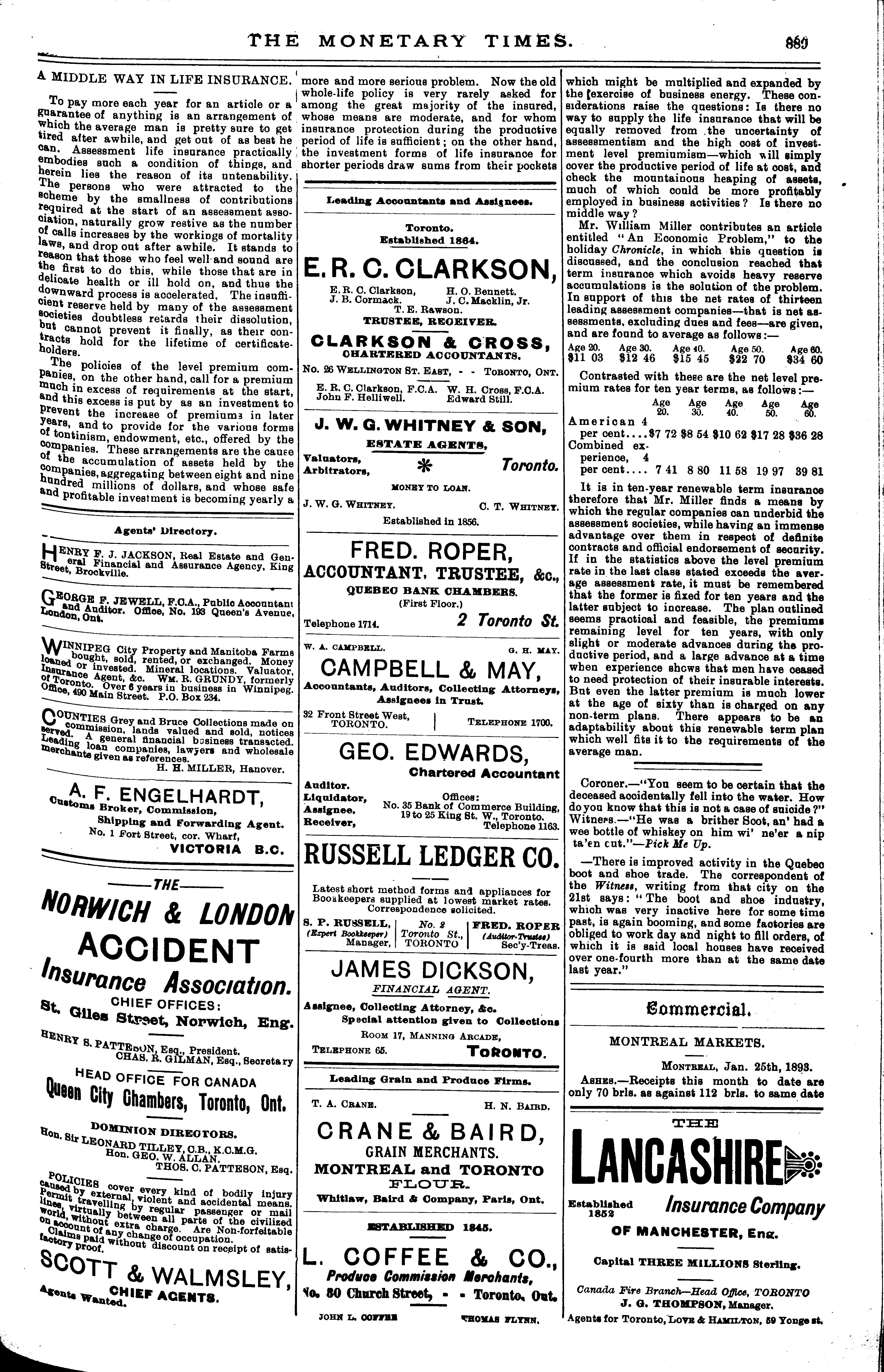 The monetary times, trade review and insurance chronicle : [Vol. 26, no. 30 (Jan. 27, 1893)]