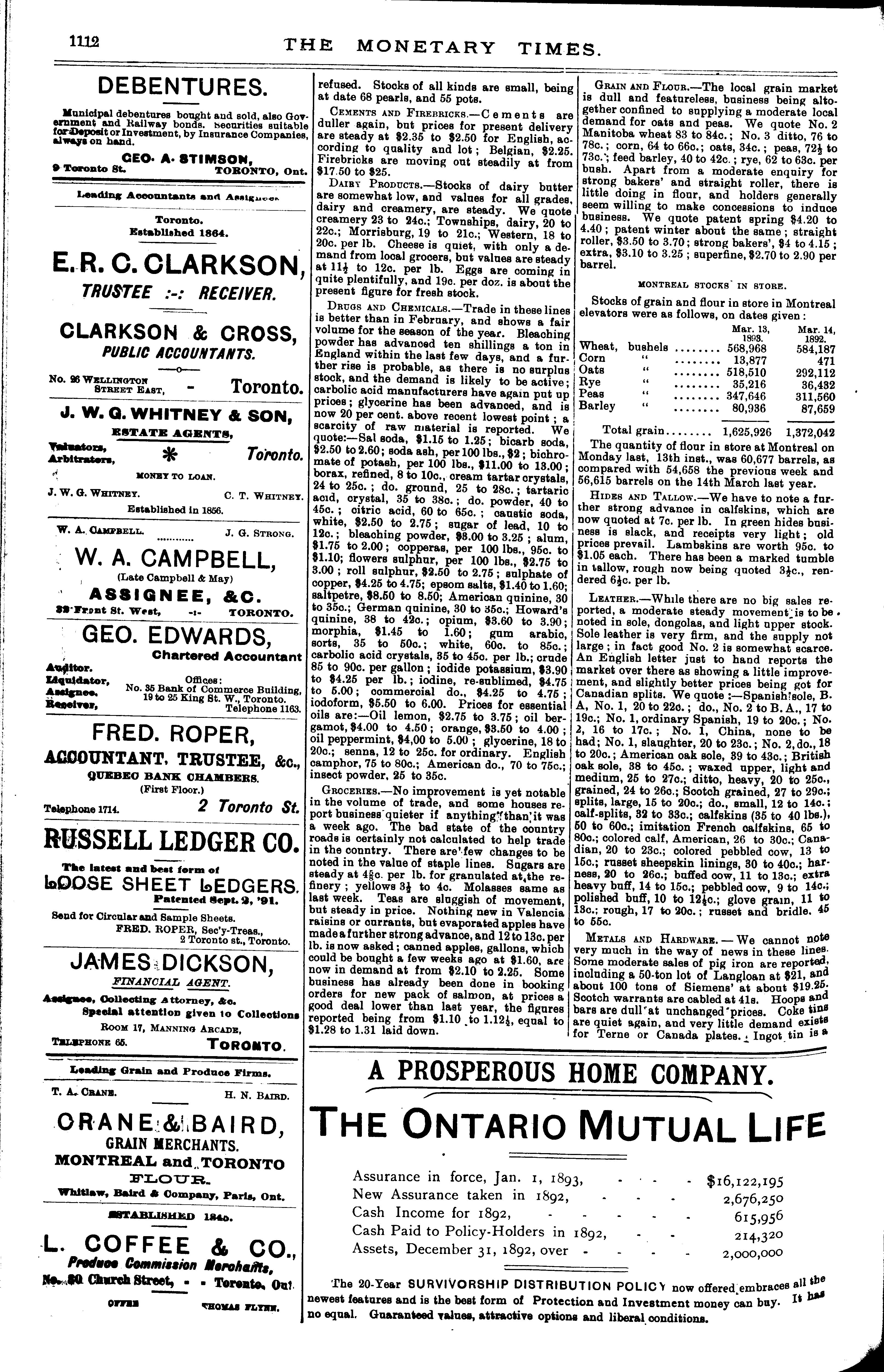 The monetary times, trade review and insurance chronicle : [Vol. 26, no. 37 (Mar. 17, 1893)]