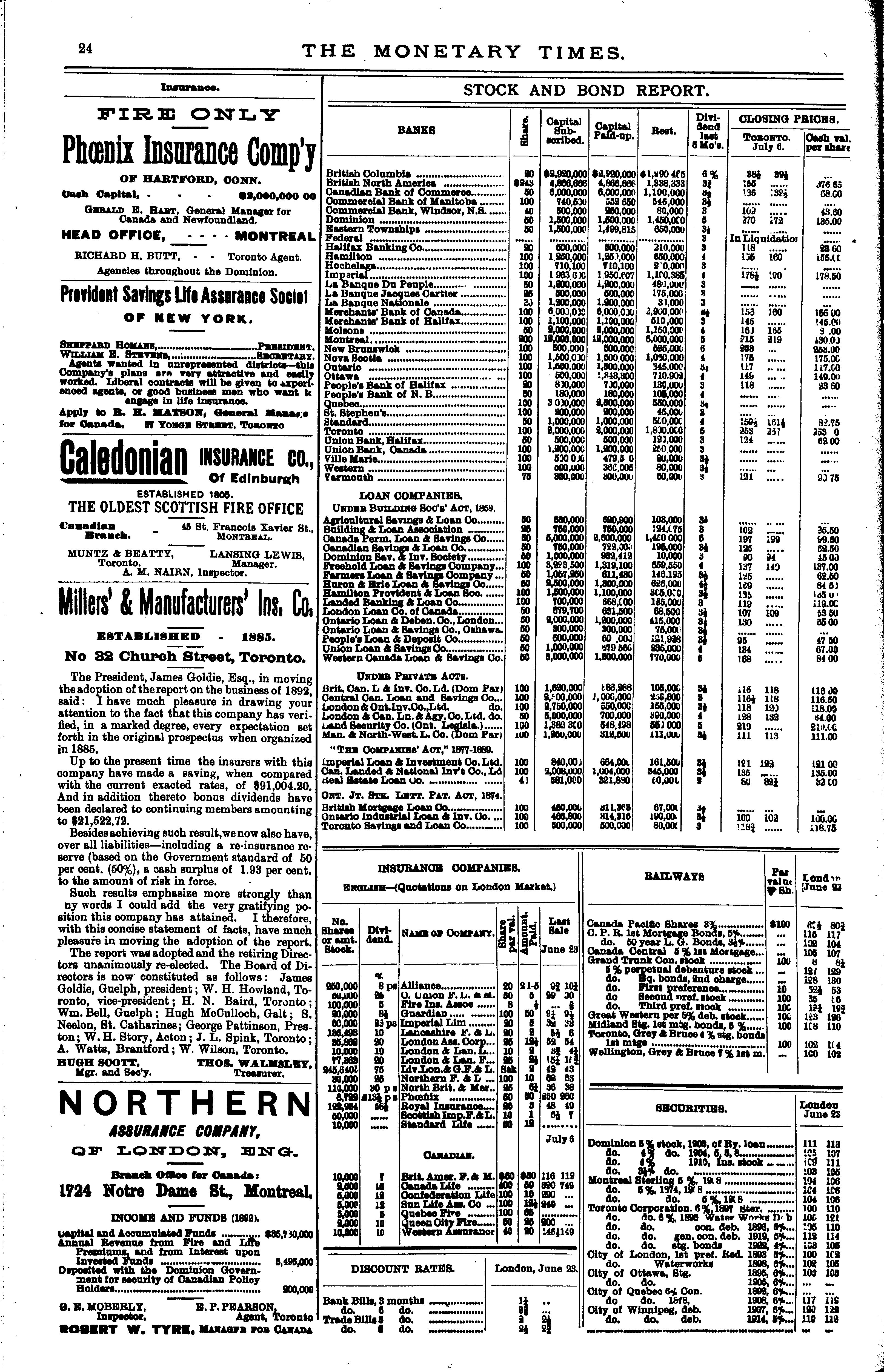 The monetary times, trade review and insurance chronicle : [Vol. 27, no. 1 (July 7, 1893)]