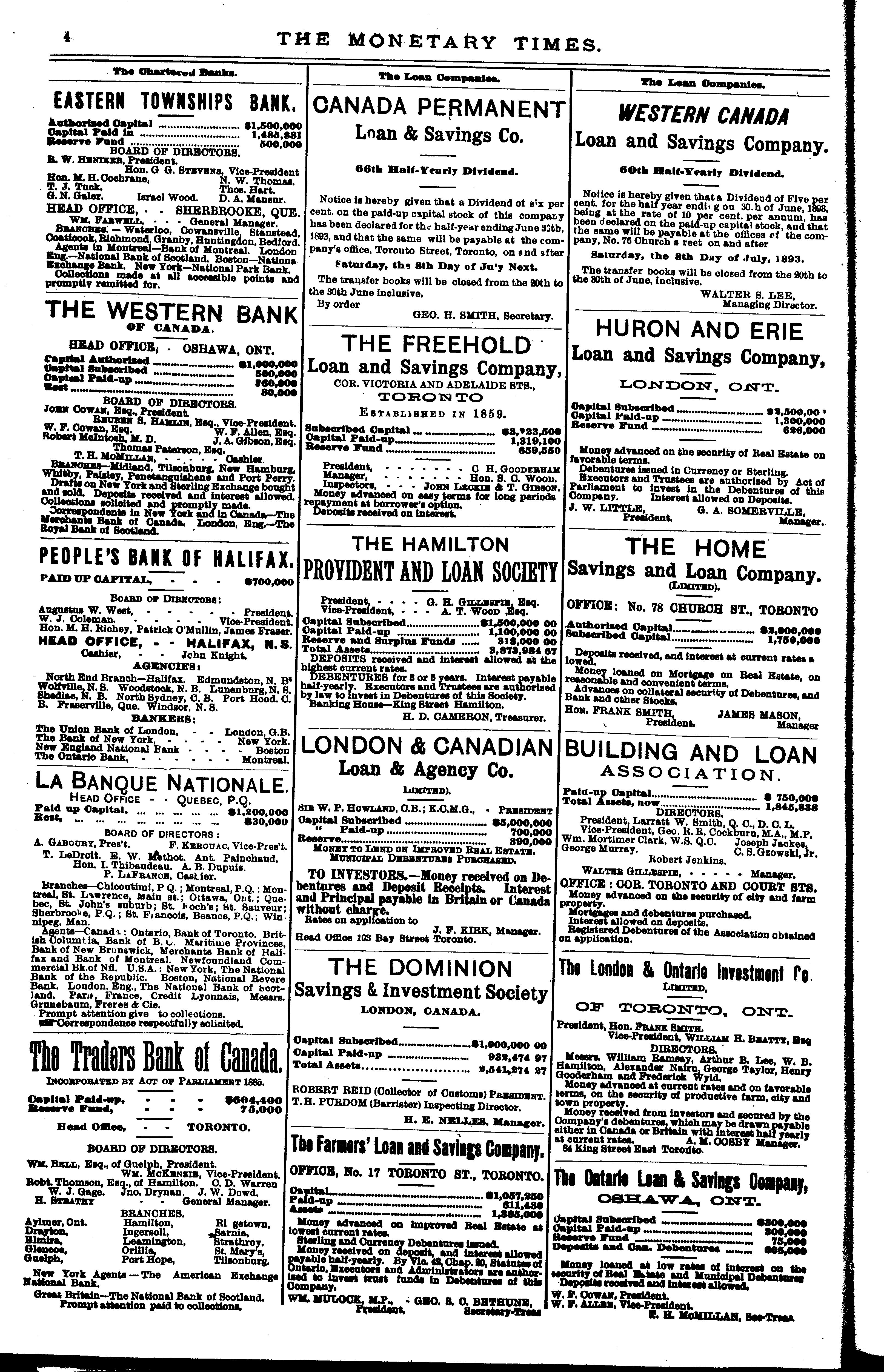 The monetary times, trade review and insurance chronicle : [Vol. 27, no. 1 (July 7, 1893)]