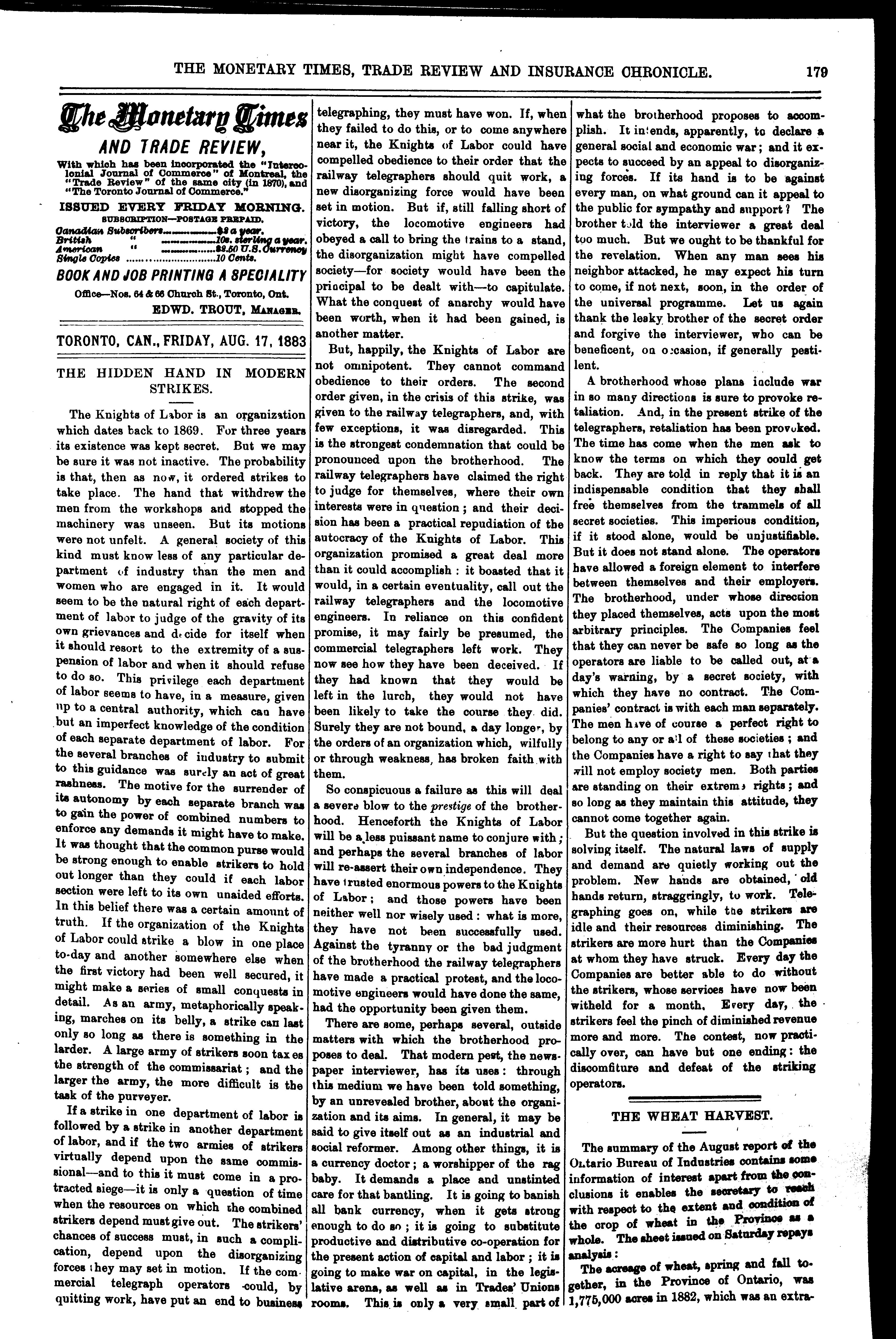 The monetary times, trade review and insurance chronicle : [Vol. 17, no. 7 (Aug. 17, 1883)]