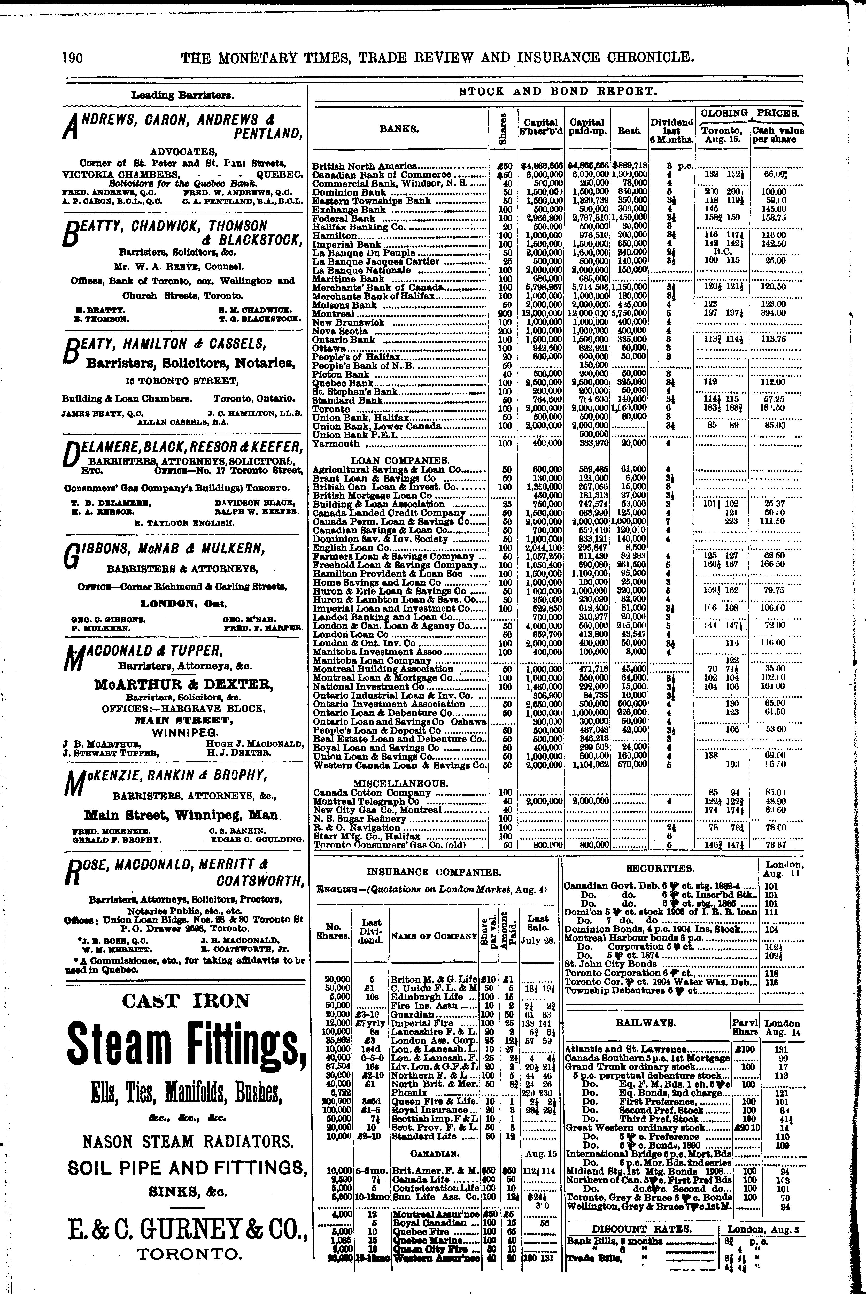 The monetary times, trade review and insurance chronicle : [Vol. 17, no. 7 (Aug. 17, 1883)]
