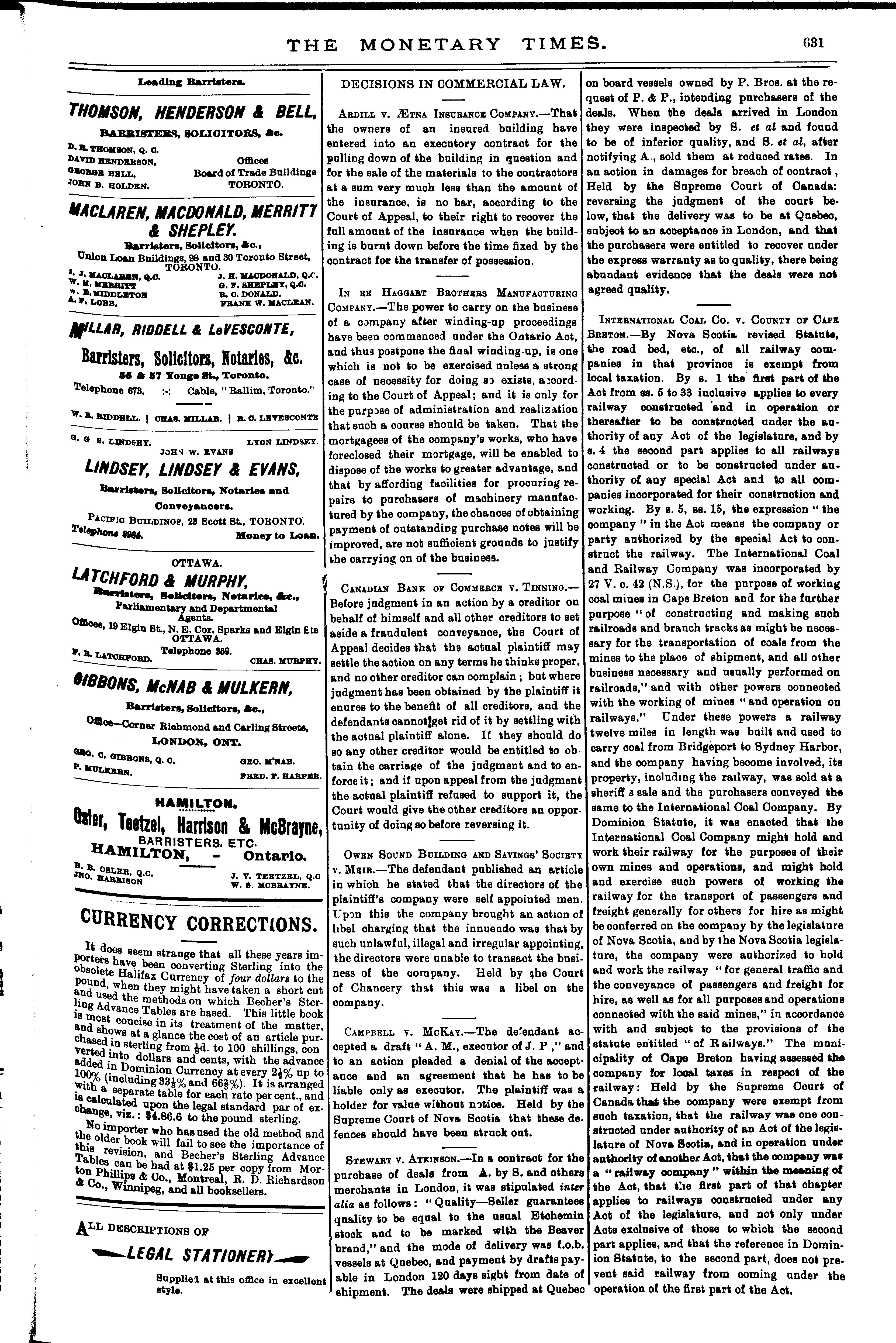 The monetary times, trade review and insurance chronicle : [Vol. 27, no. 21 (Nov. 24, 1893)]