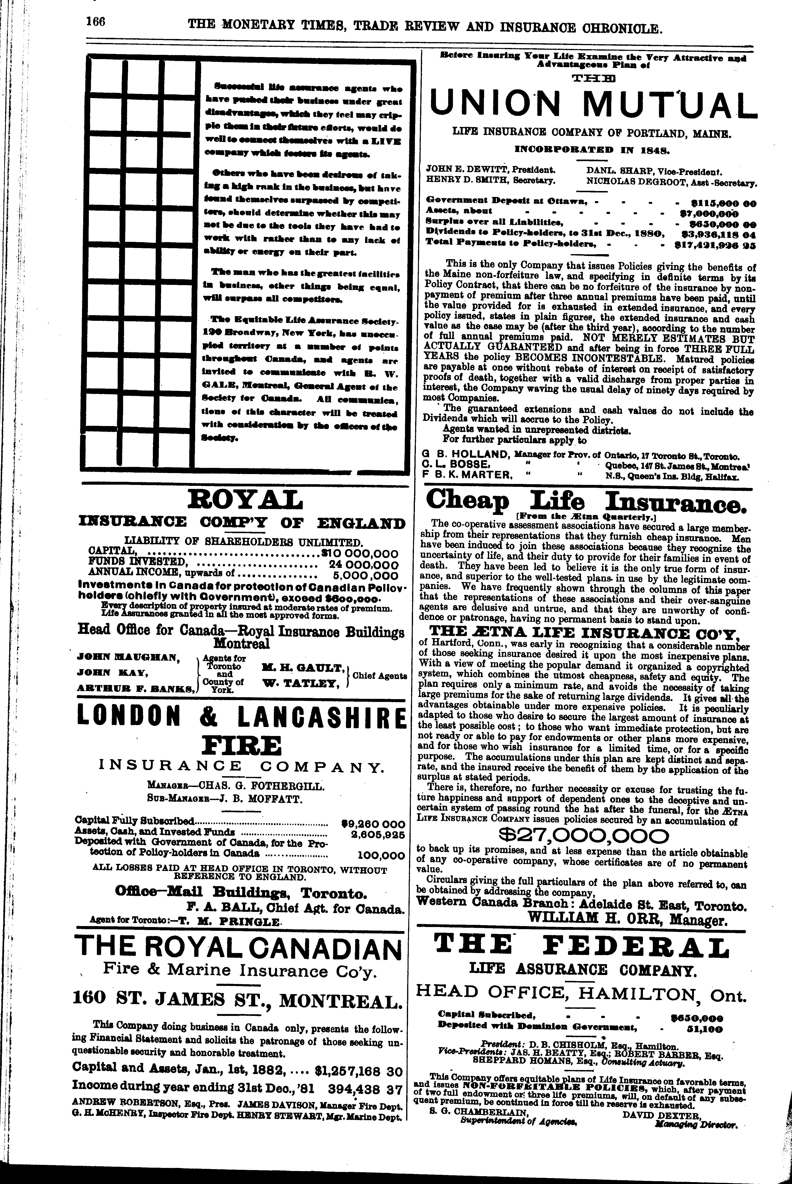 The monetary times, trade review and insurance chronicle : [Vol. 16, no. 6 (Aug. 11, 1882)]