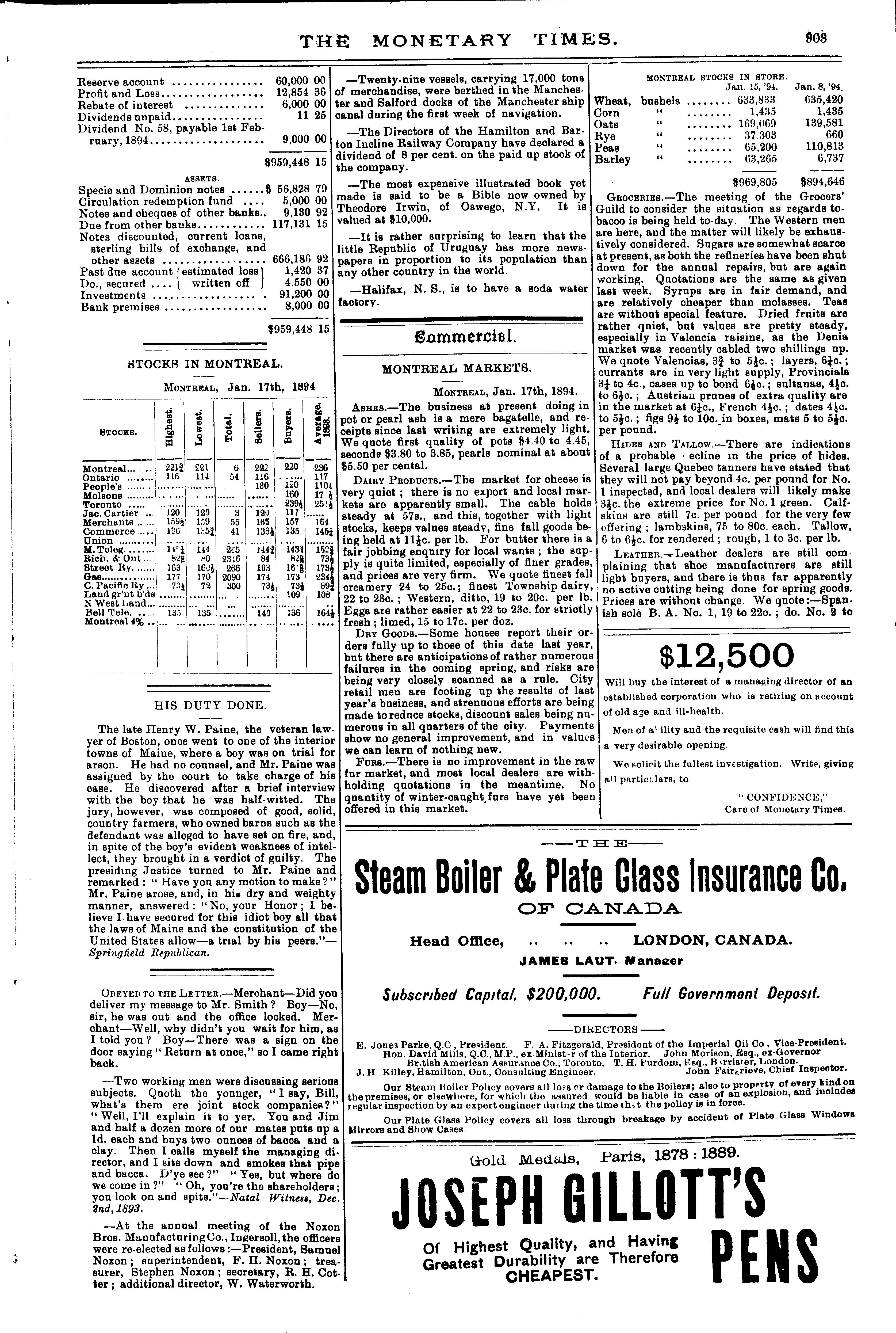 The monetary times, trade review and insurance chronicle : [Vol. 27, no. 29 (Jan. 19, 1894)]