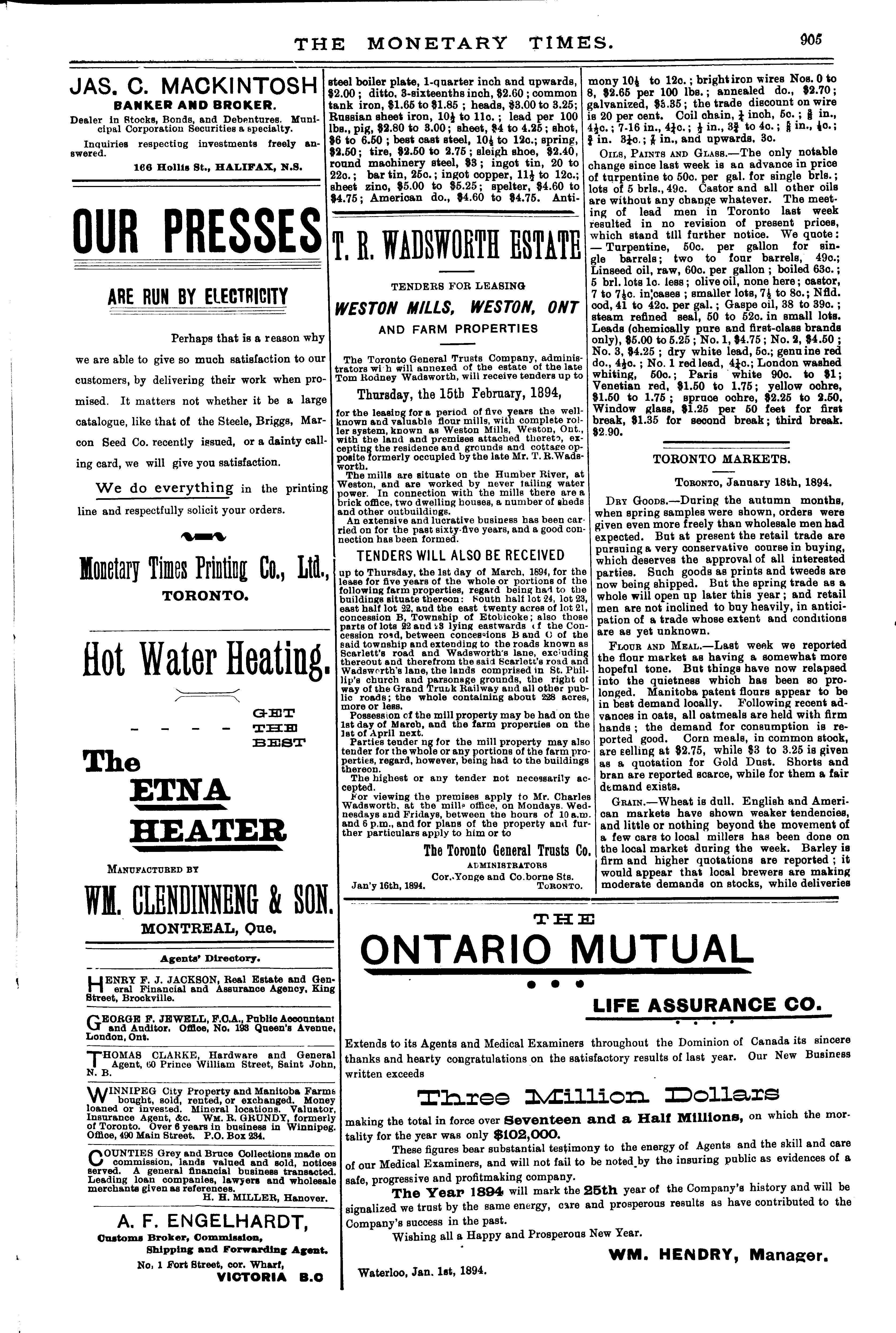 The monetary times, trade review and insurance chronicle : [Vol. 27, no. 29 (Jan. 19, 1894)]
