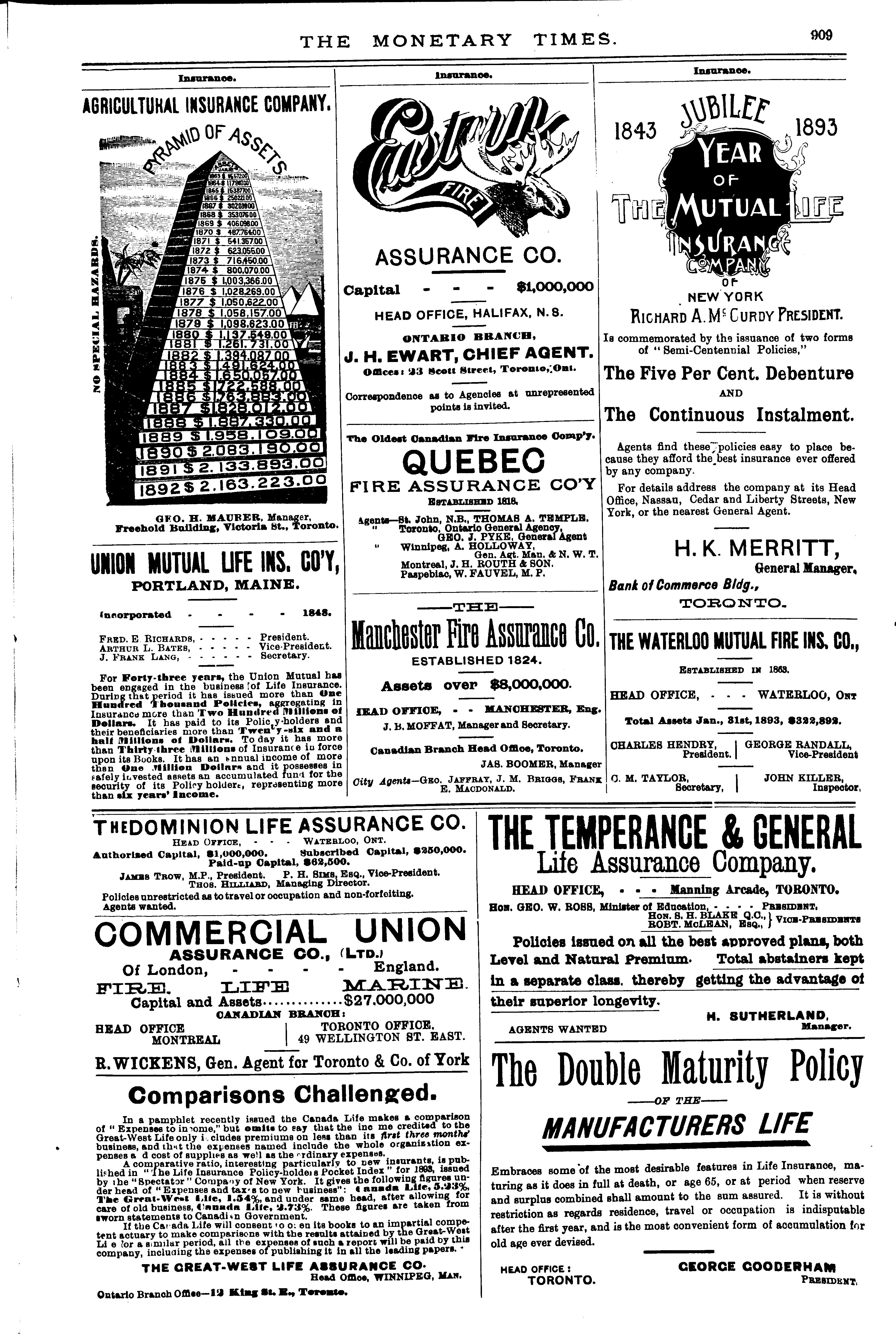 Toronto : Monetary Times Print. Co. of Canada, [1894]; 33 images avec recherche en texte intégral