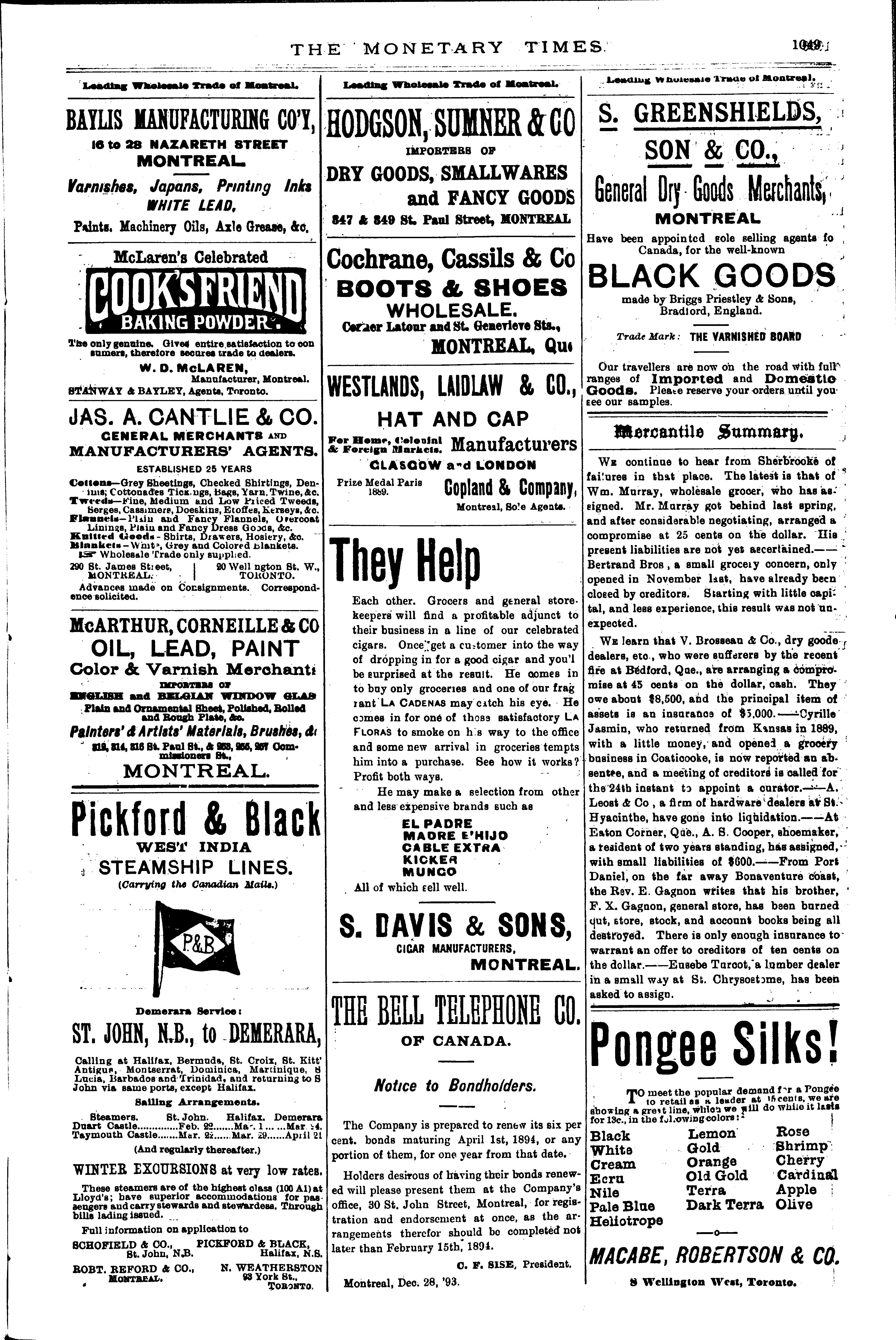 The monetary times, trade review and insurance chronicle : [Vol. 27, no. 34 (Feb. 23, 1894)]