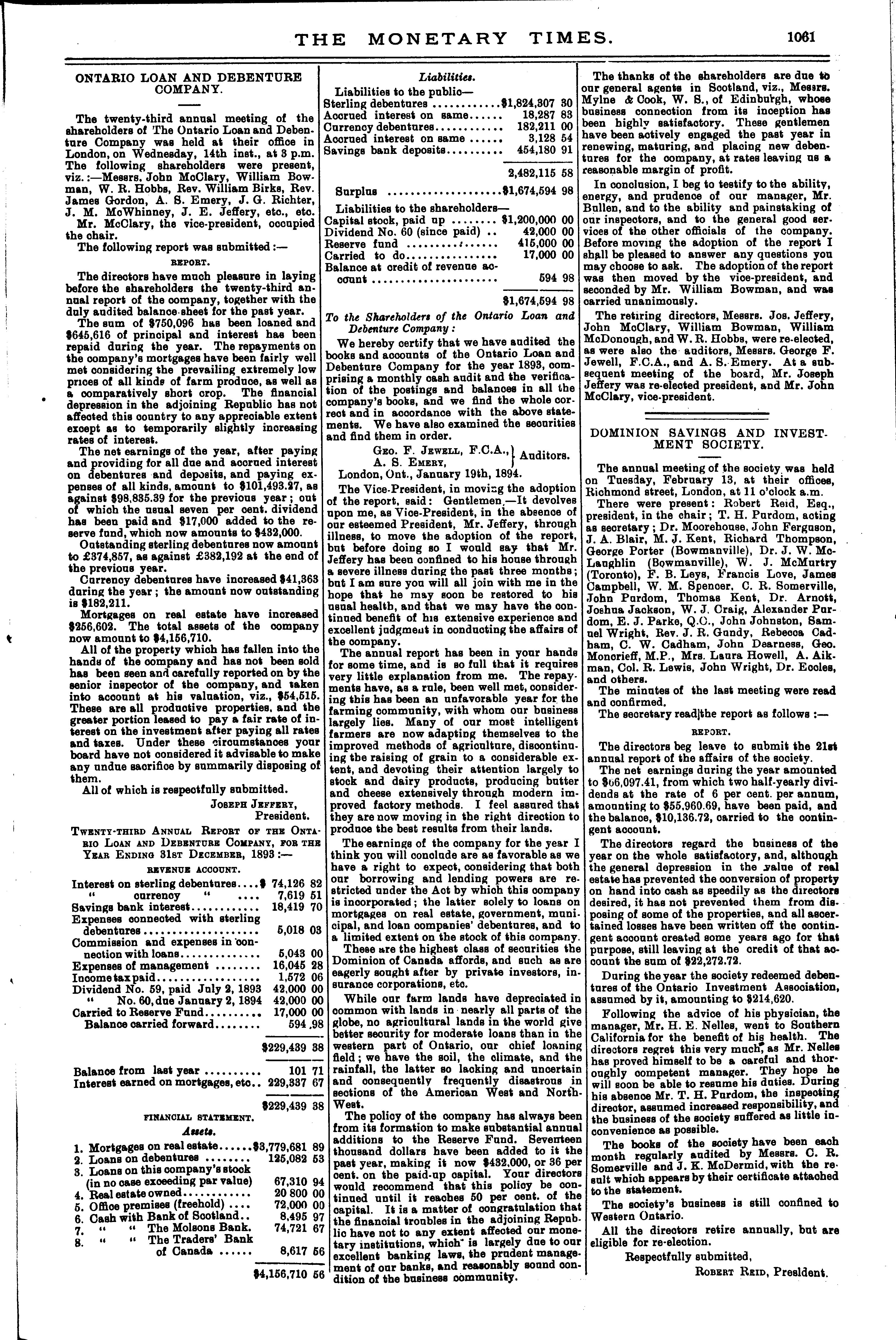 The monetary times, trade review and insurance chronicle : [Vol. 27, no. 34 (Feb. 23, 1894)]