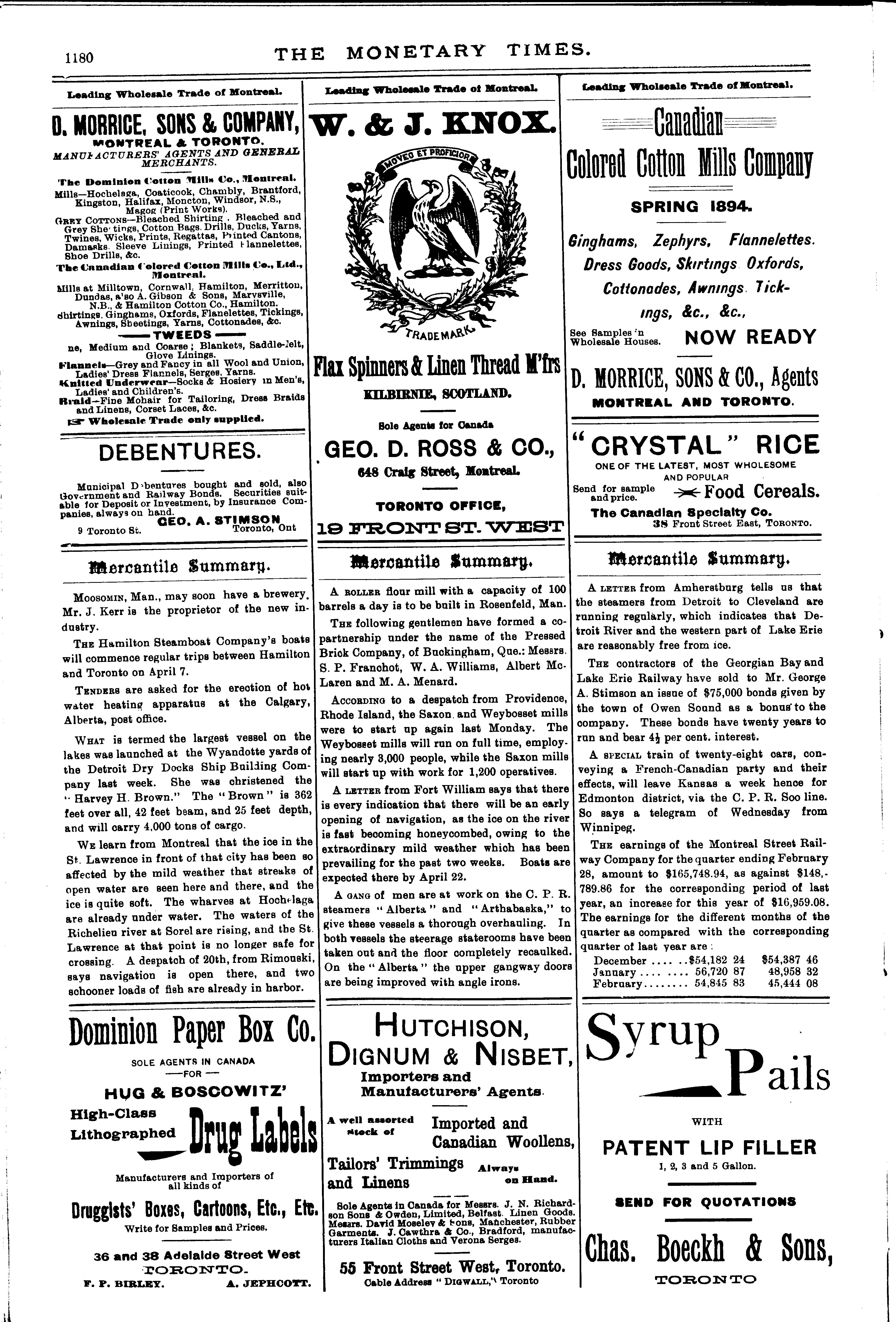 The monetary times, trade review and insurance chronicle : [Vol. 27, no. 38 (Mar. 23, 1894)]