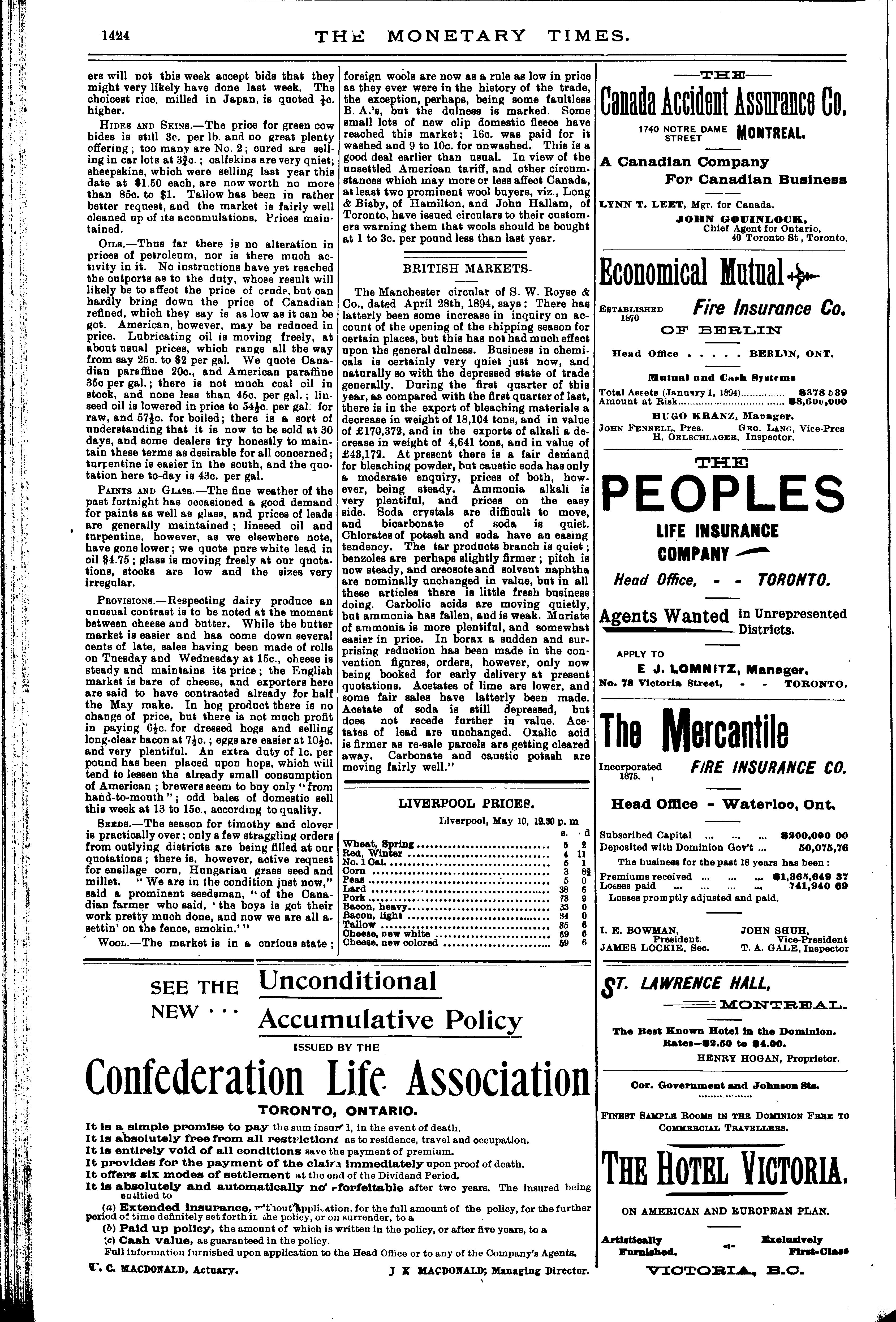 - The monetary times, trade review and insurance chronicle [Vol. 27, no. 46 [i.e. 45] (May 11, 1894)]