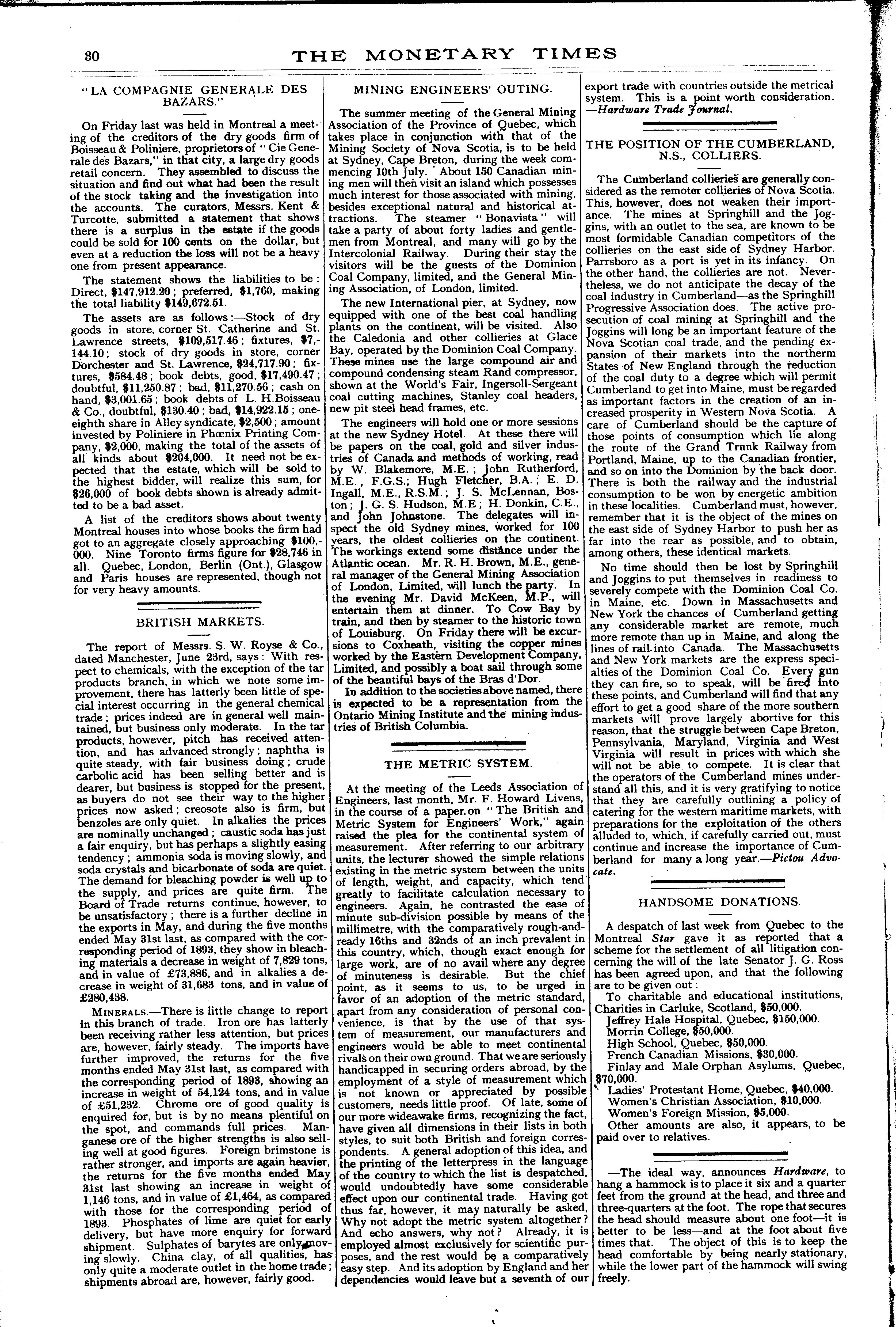 The monetary times, trade review and insurance chronicle : [Vol. 28, no. 1 (July 6, 1894)]
