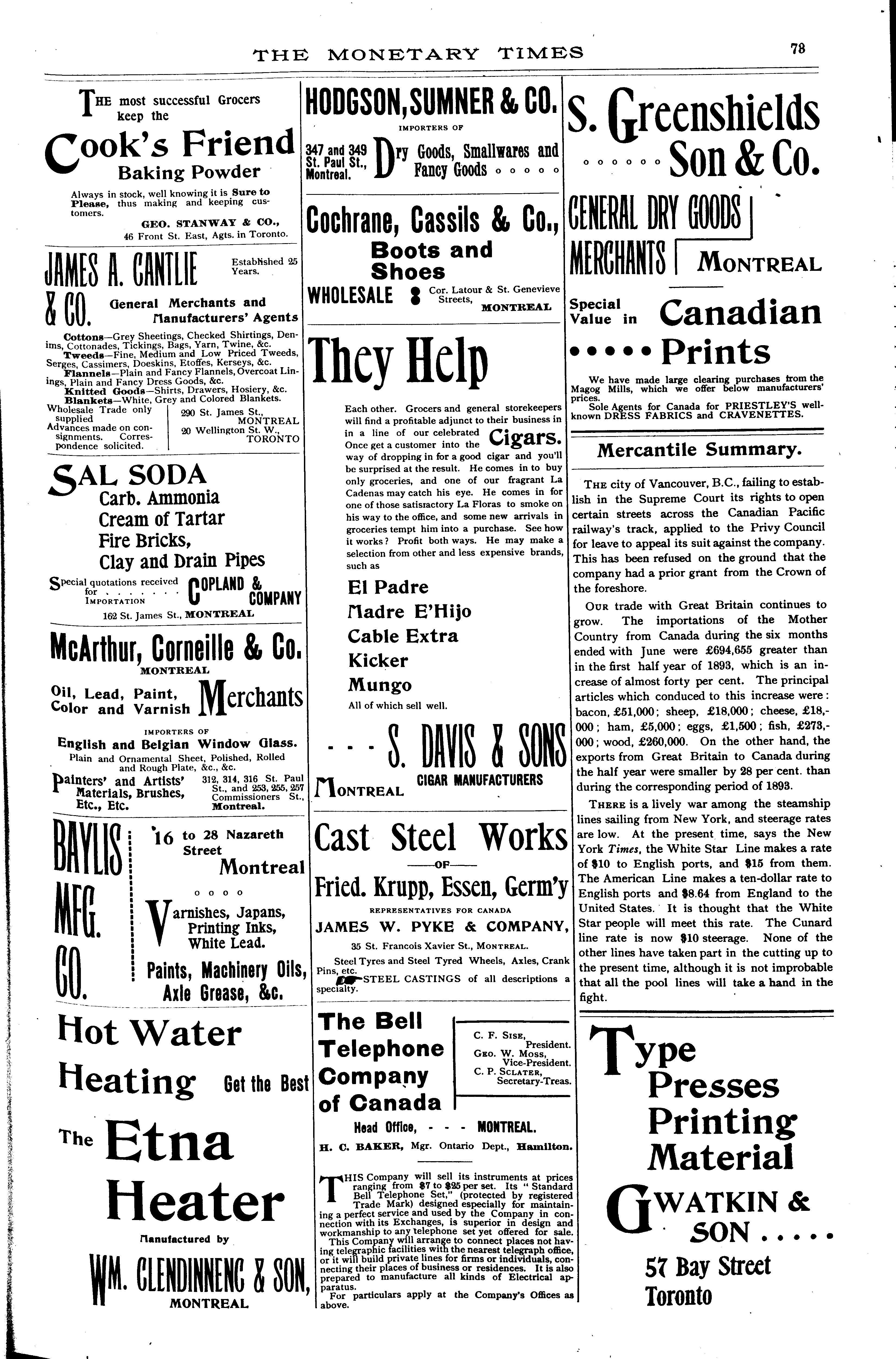 The monetary times, trade review and insurance chronicle : [Vol. 28, no. 3 (July 20, 1894)]