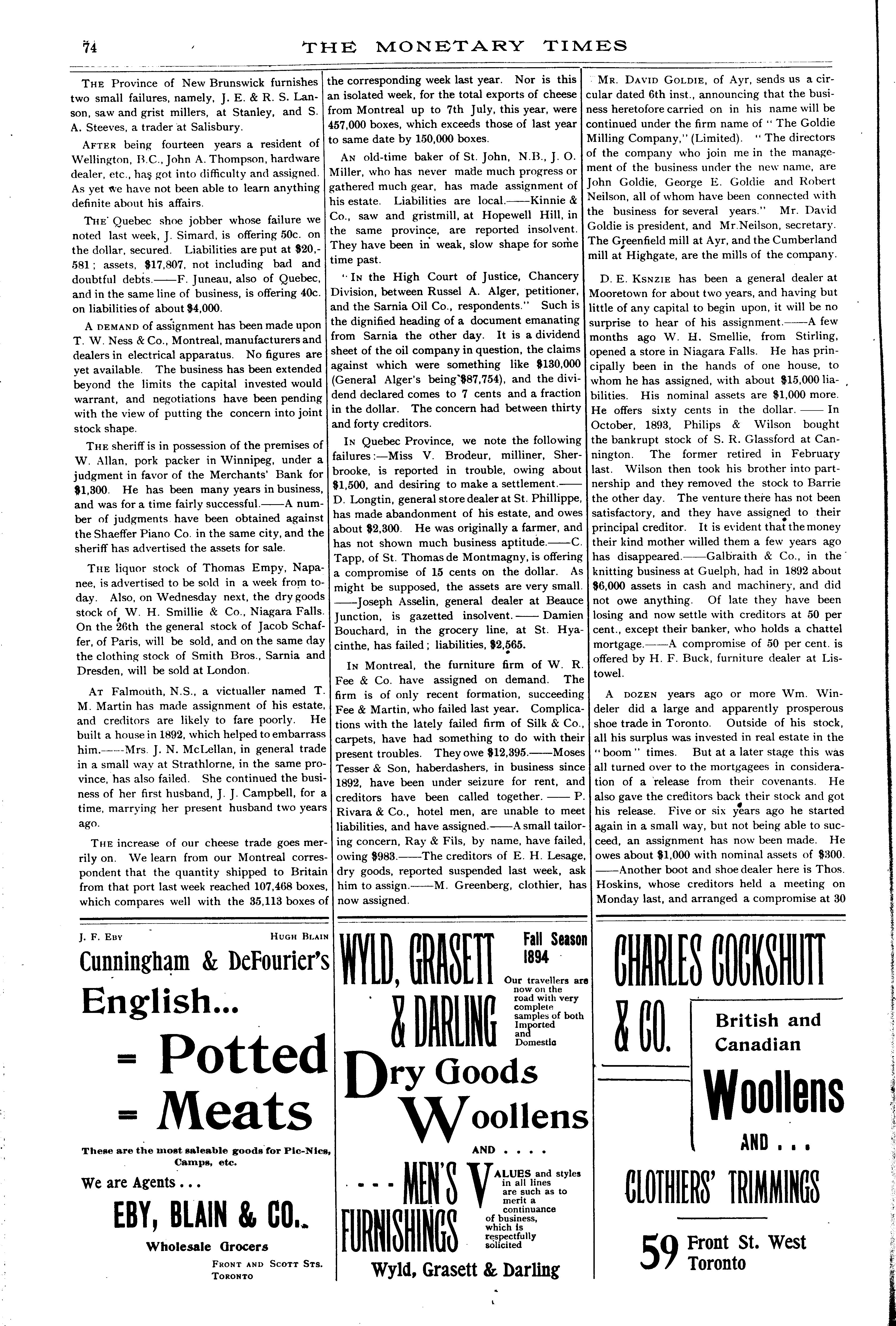 The monetary times, trade review and insurance chronicle : [Vol. 28, no. 3 (July 20, 1894)]