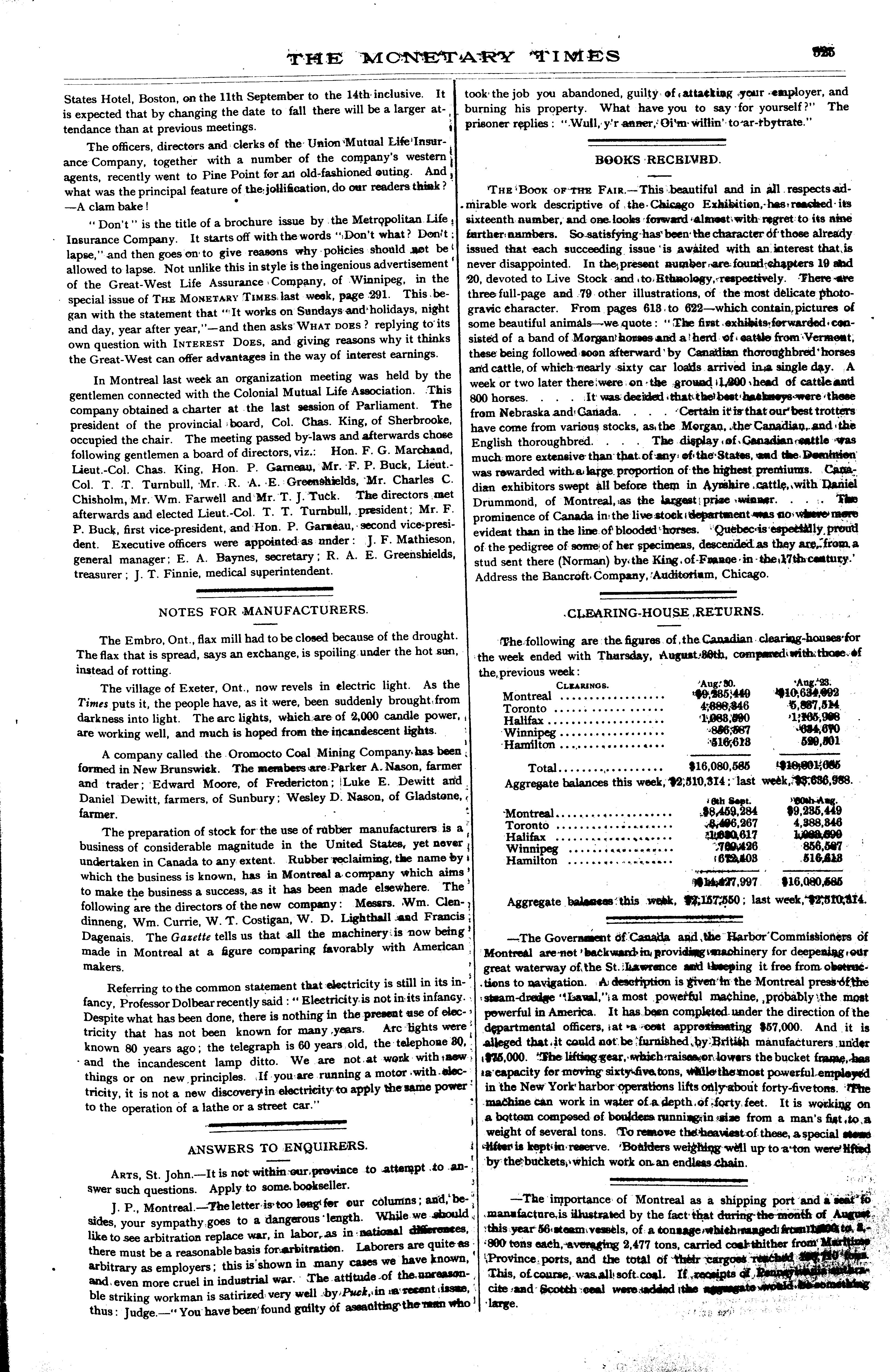 The monetary times, trade review and insurance chronicle : [Vol. 28, no. 10 (Sept. 7, 1894)]
