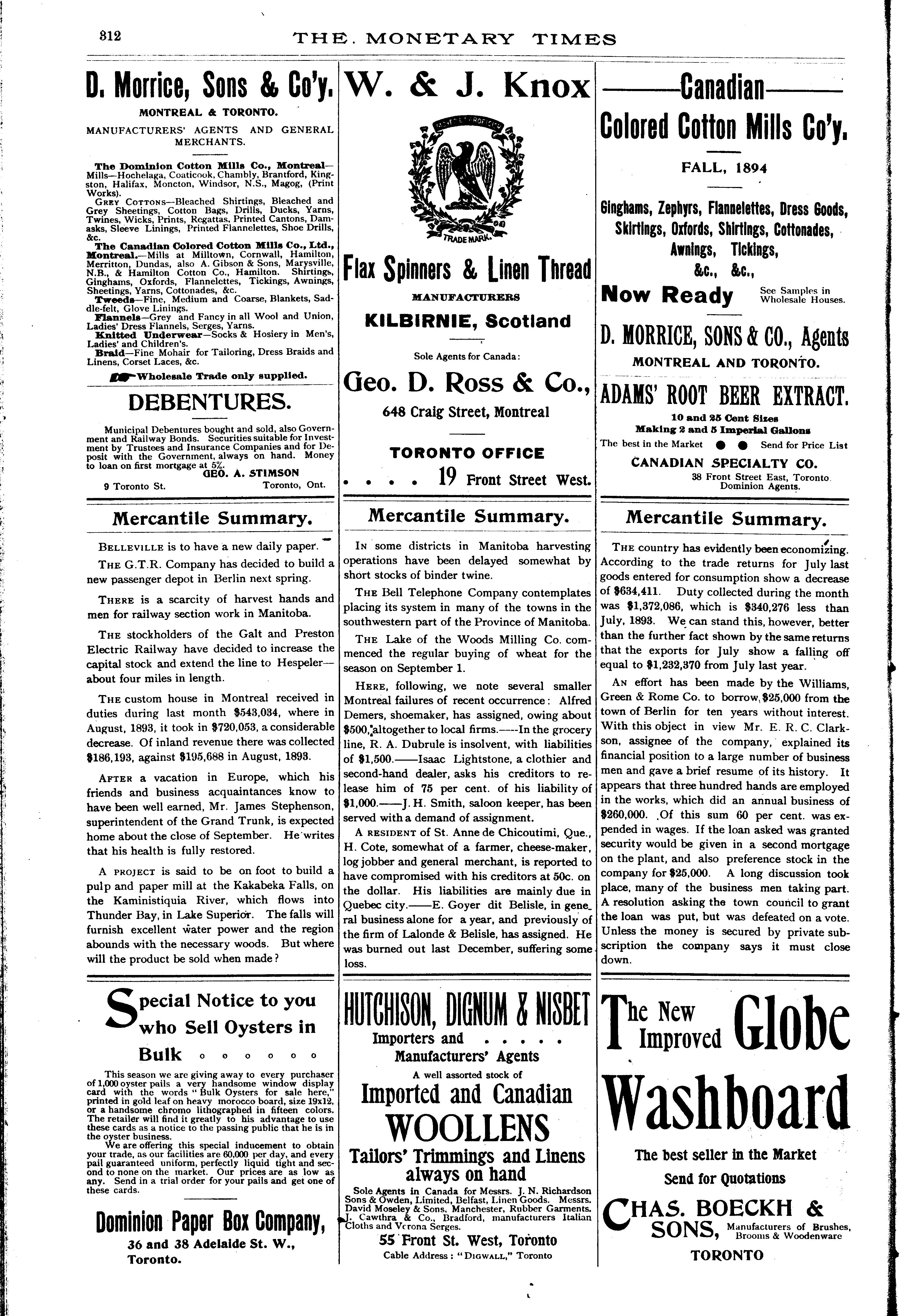 The monetary times, trade review and insurance chronicle : [Vol. 28, no. 10 (Sept. 7, 1894)]