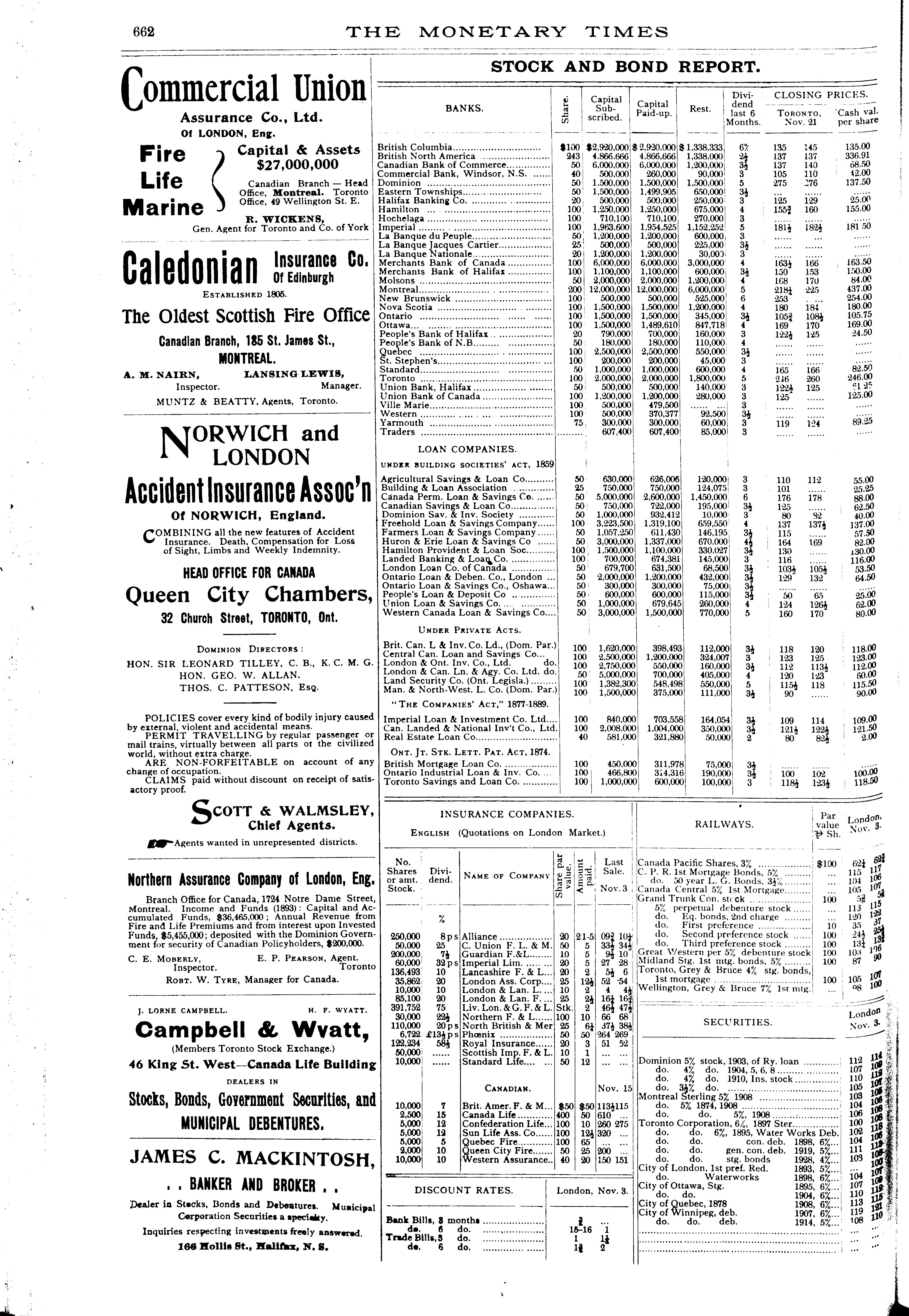 The monetary times, trade review and insurance chronicle : [Vol. 28, no. 21 (Nov. 23, 1894)]