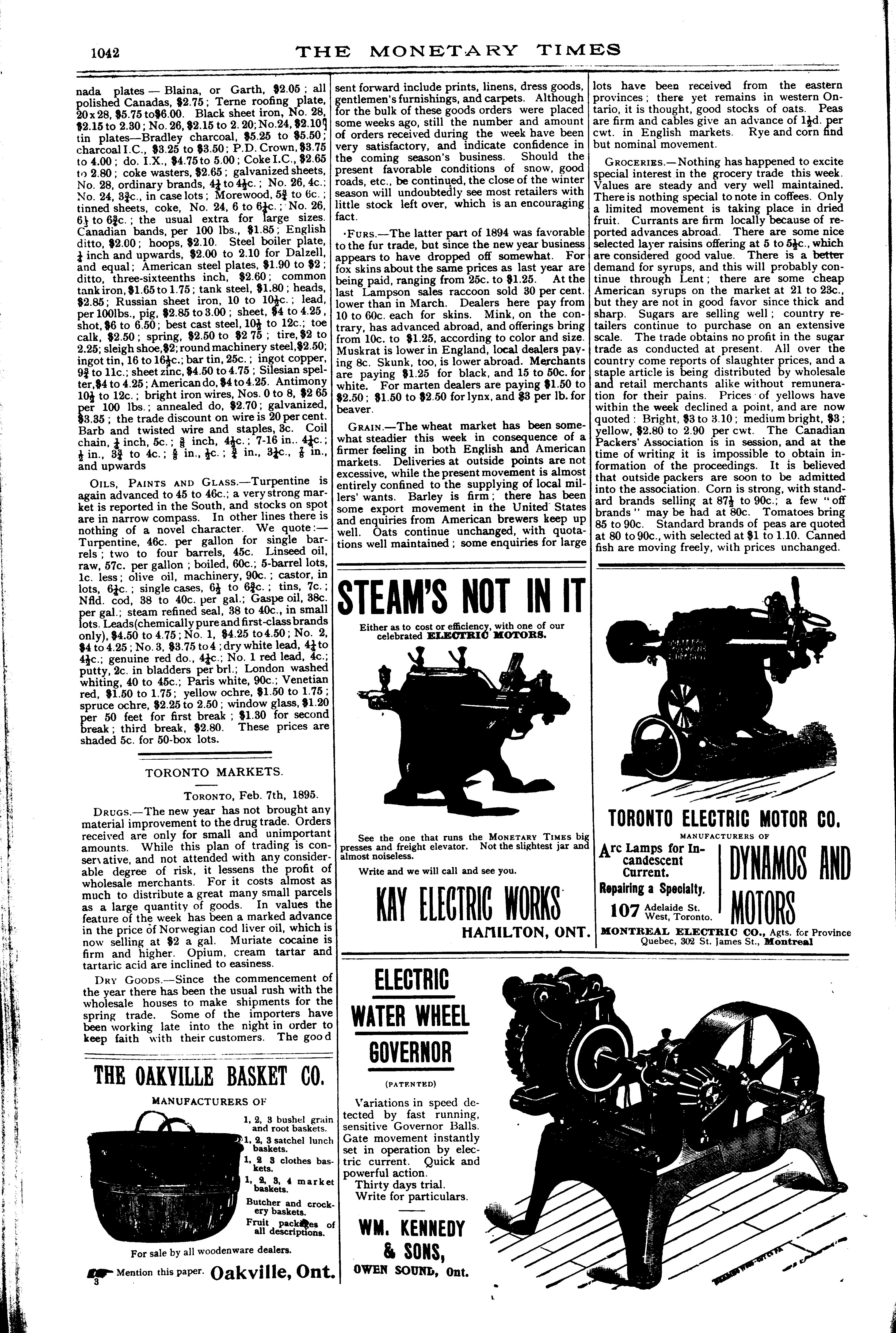 The monetary times, trade review and insurance chronicle : [Vol. 28, no. 32 (Feb. 8, 1895)]