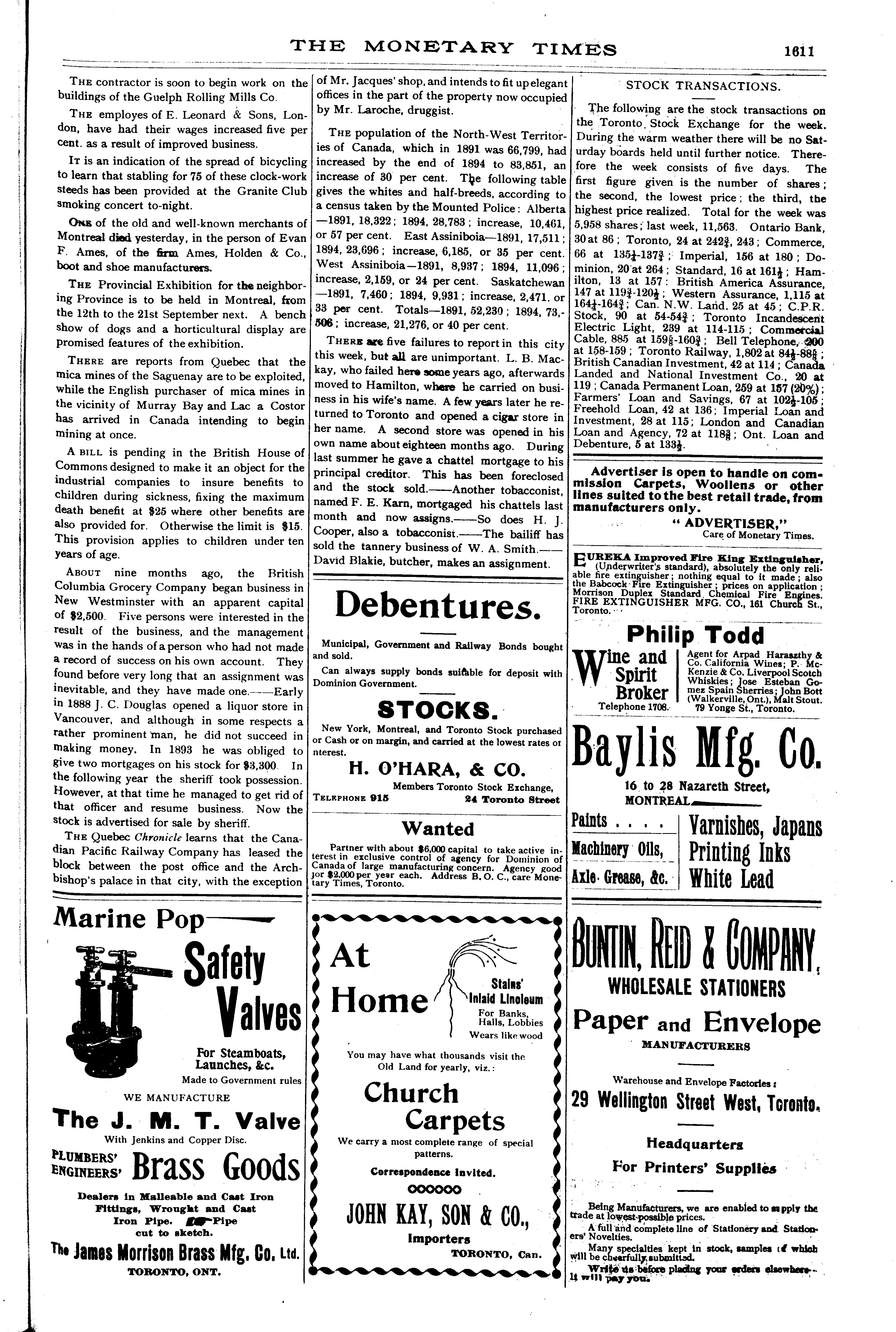 The monetary times, trade review and insurance chronicle : [Vol. 28, no. 50 (June 14, 1895)]