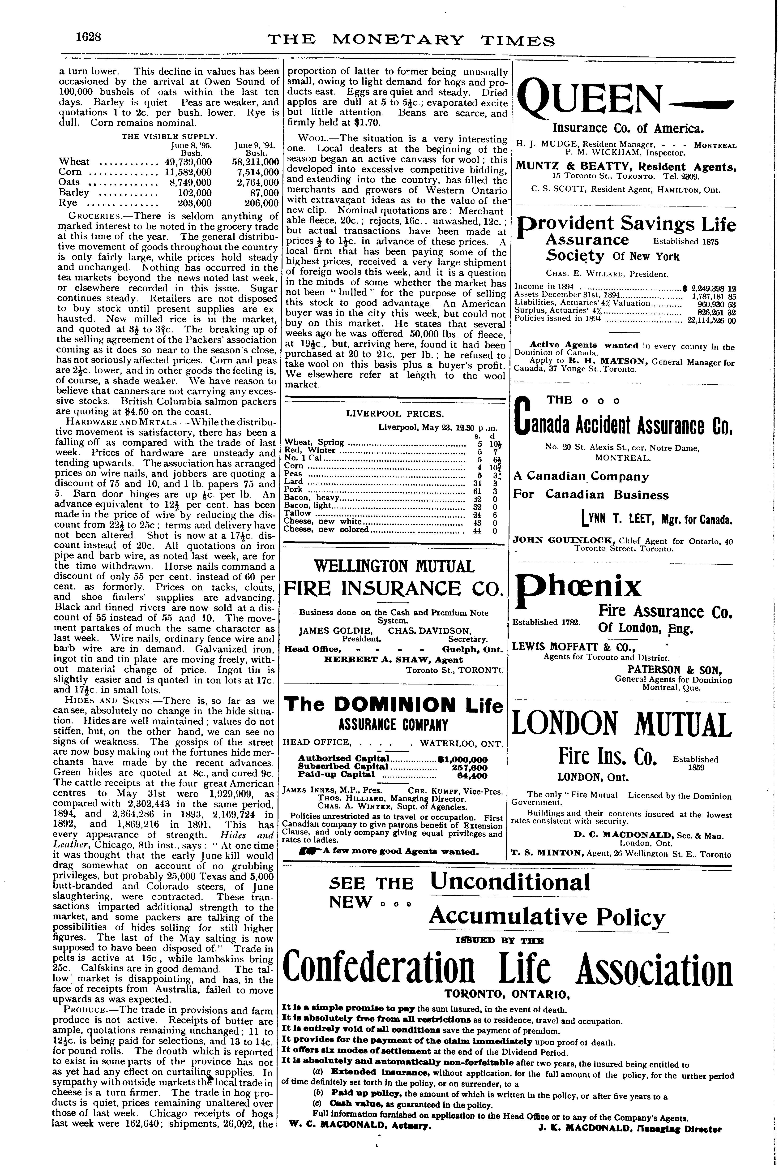 The monetary times, trade review and insurance chronicle : [Vol. 28, no. 50 (June 14, 1895)]