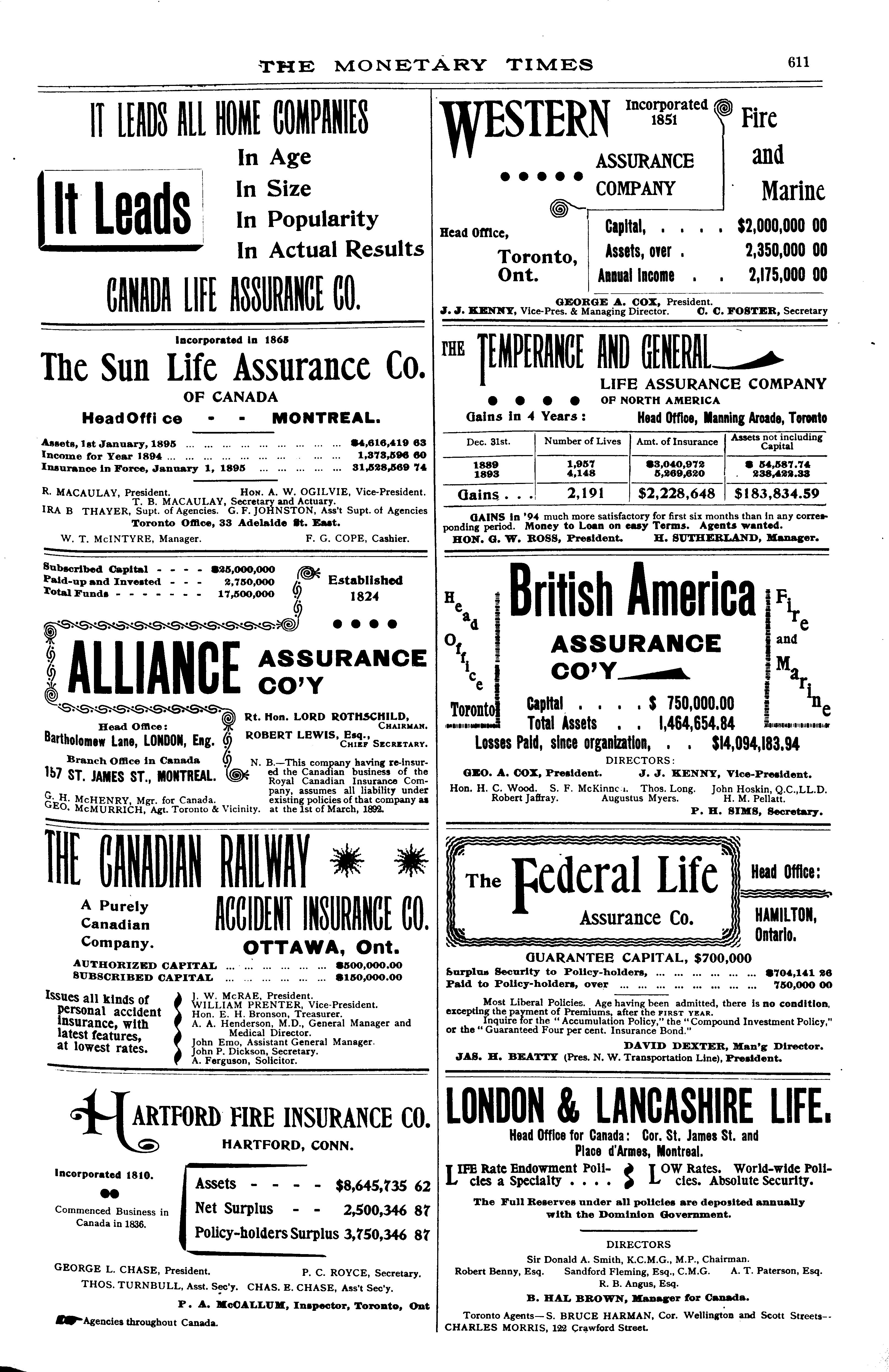 The monetary times, trade review and insurance chronicle : [Vol. 29, no. 19 (Nov. 8, 1895)]