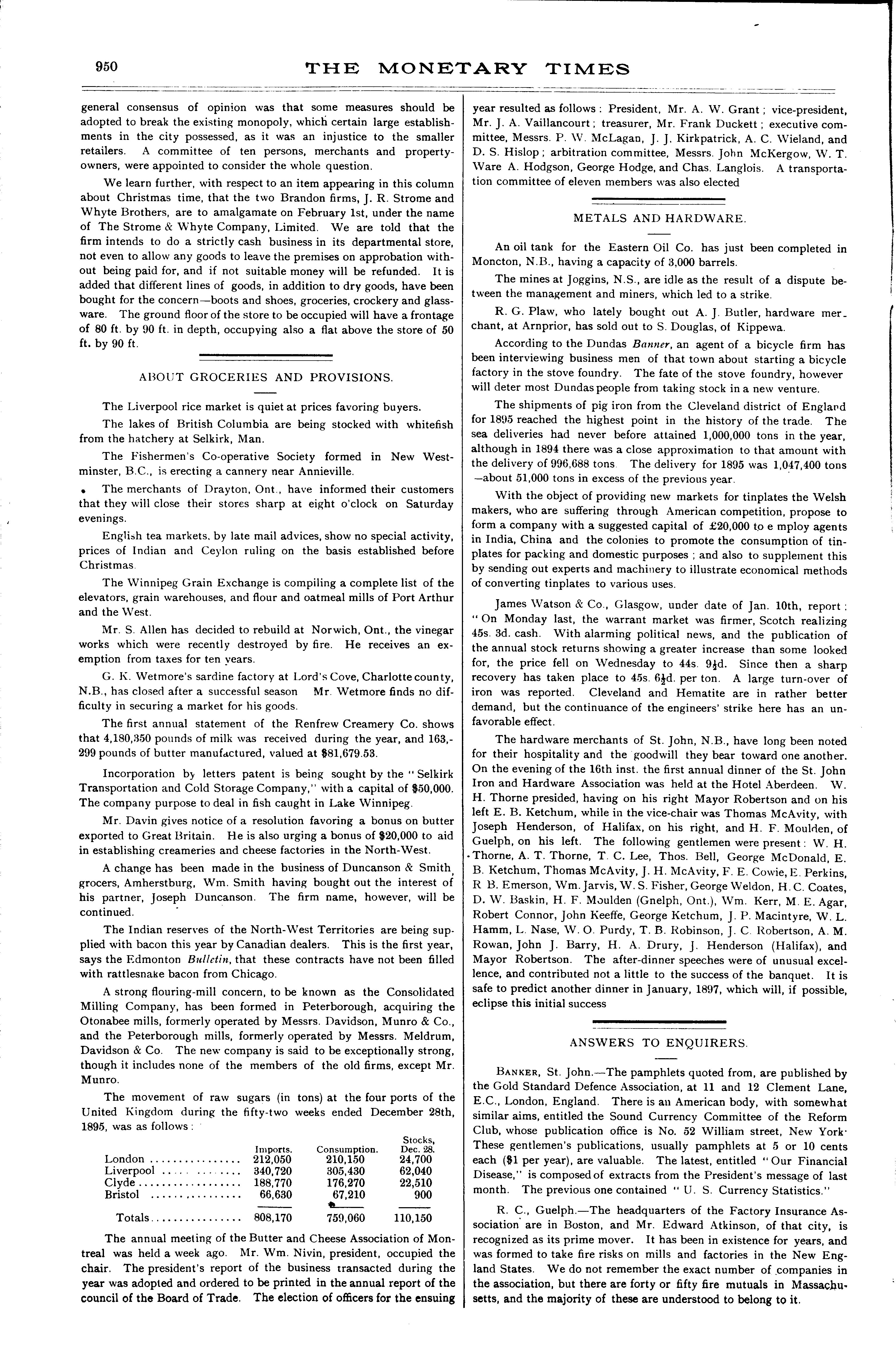 The monetary times, trade review and insurance chronicle : [Vol. 29, no. 30 (Jan. 24, 1896)]