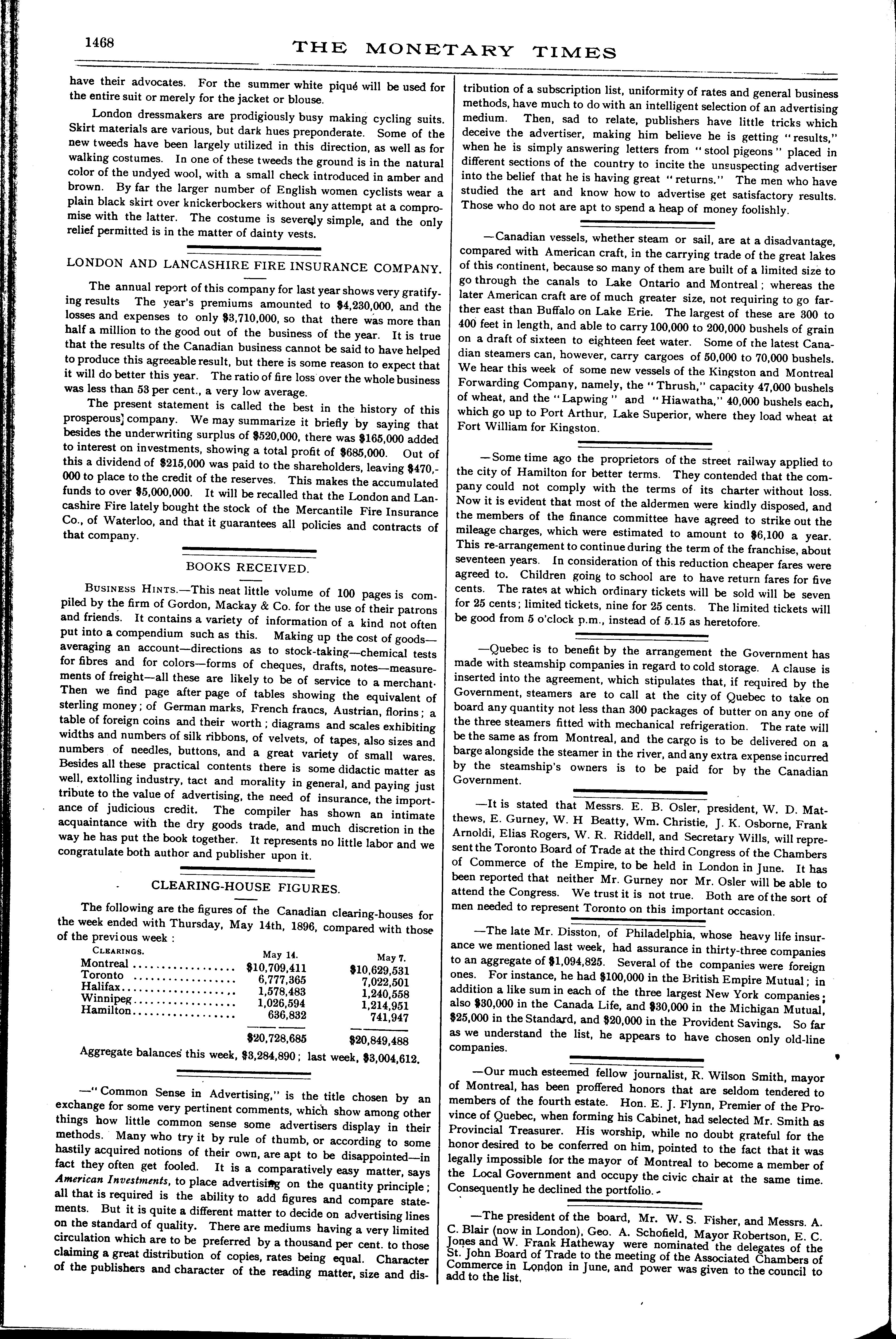 The monetary times, trade review and insurance chronicle : [Vol. 29, no. 46 (May 15, 1896)]