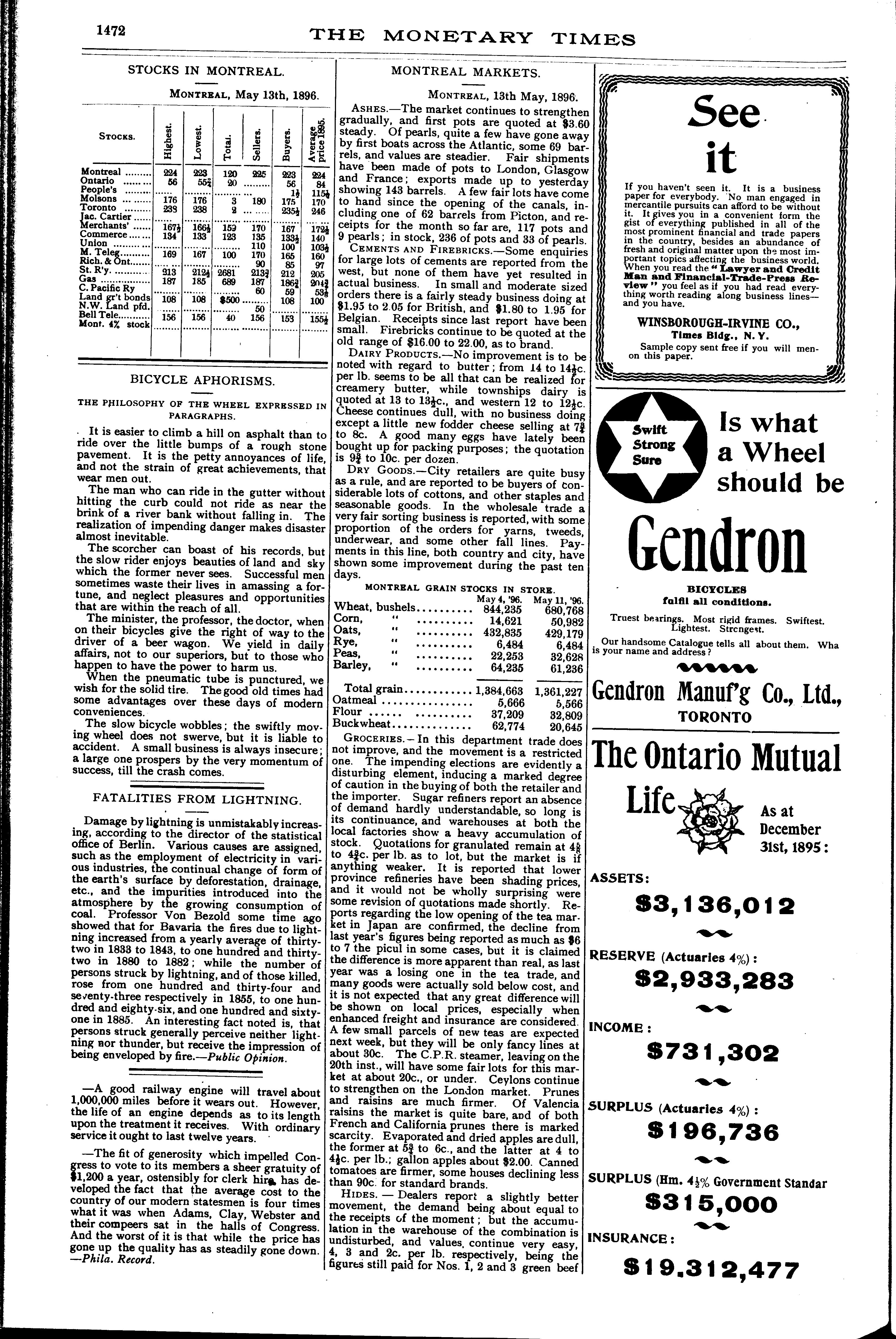 The monetary times, trade review and insurance chronicle : [Vol. 29, no. 46 (May 15, 1896)]