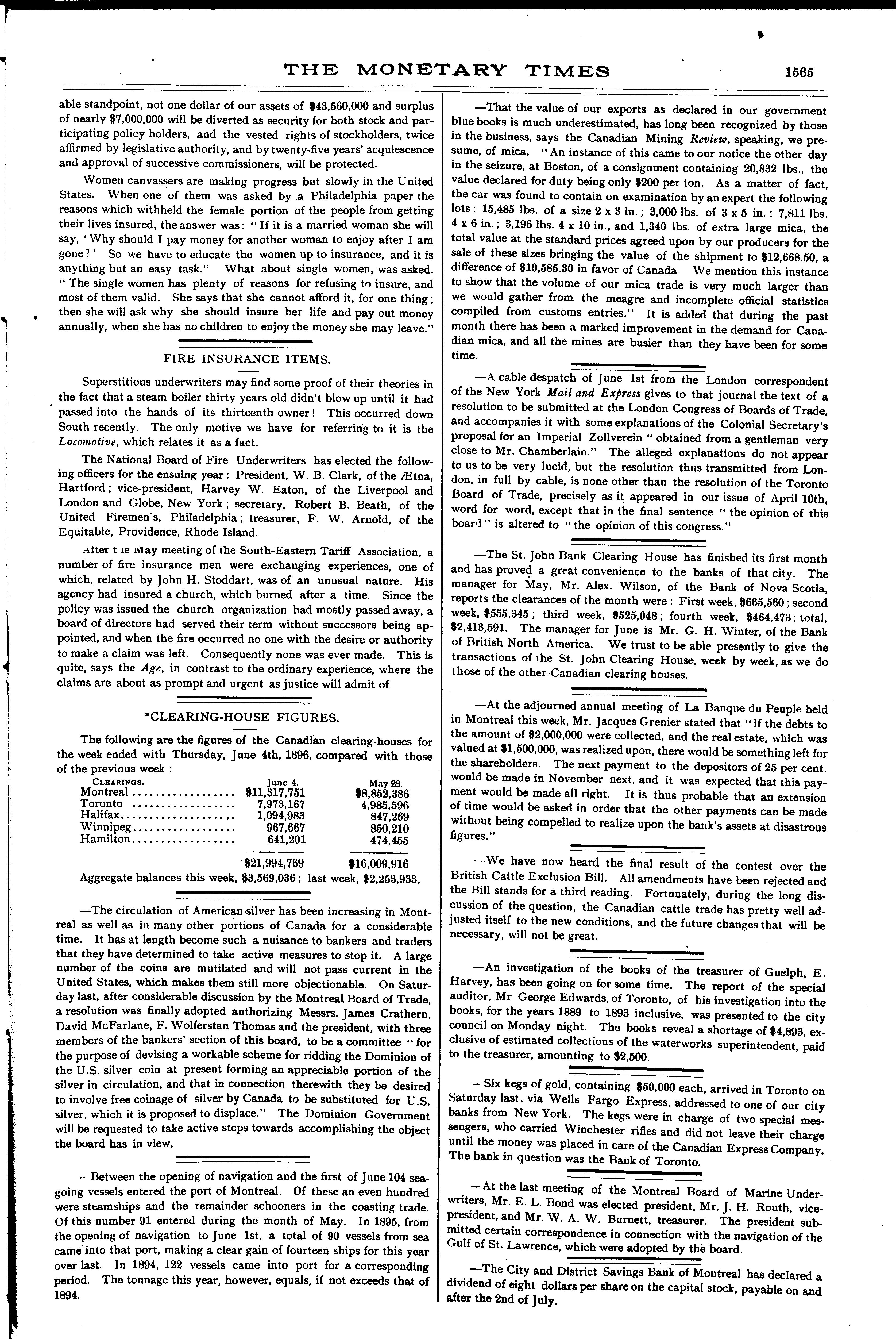 The monetary times, trade review and insurance chronicle : [Vol. 29, no. 49 (June 5, 1896)]