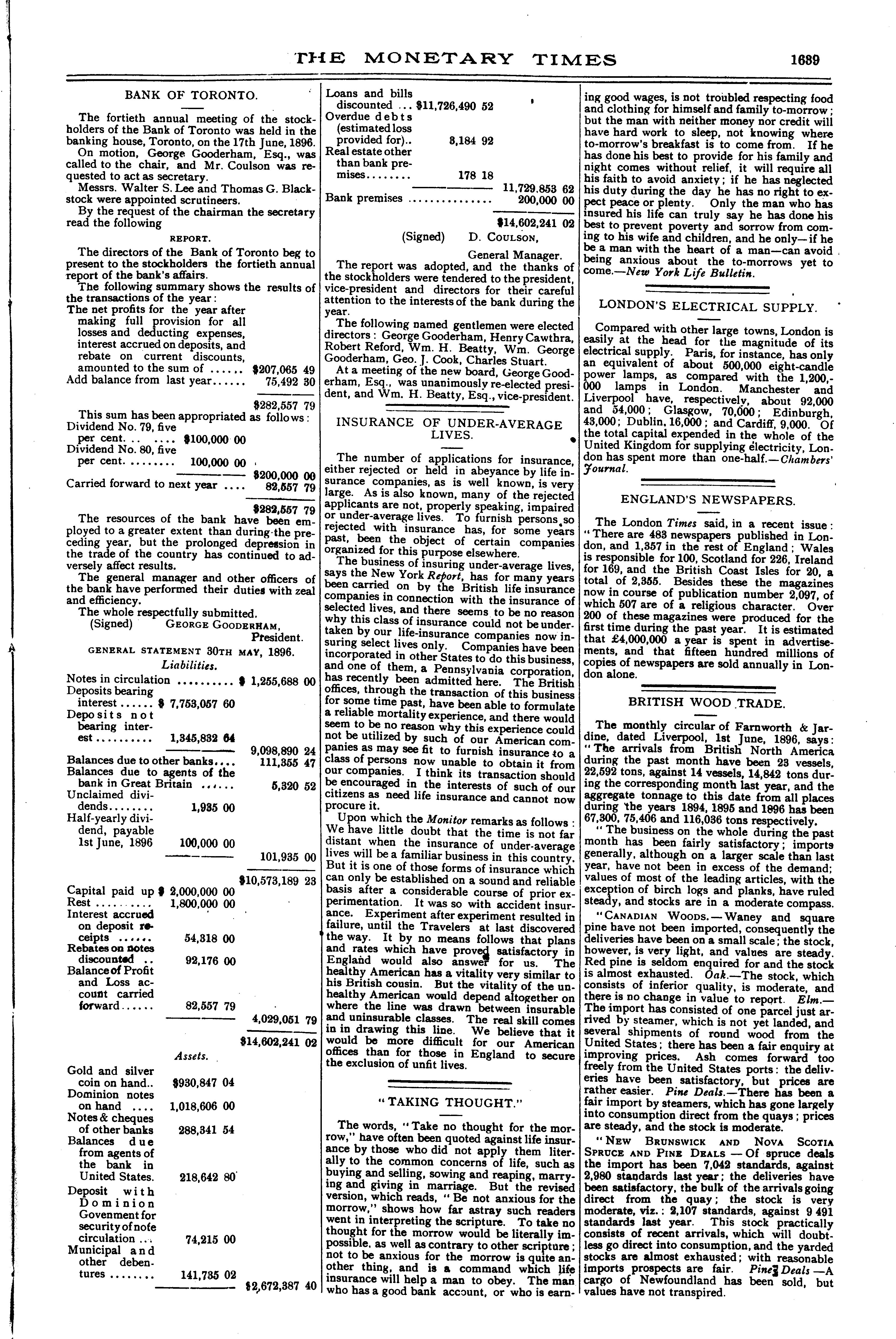 The monetary times, trade review and insurance chronicle : [Vol. 29, no. 51 (June 19, 1896)]