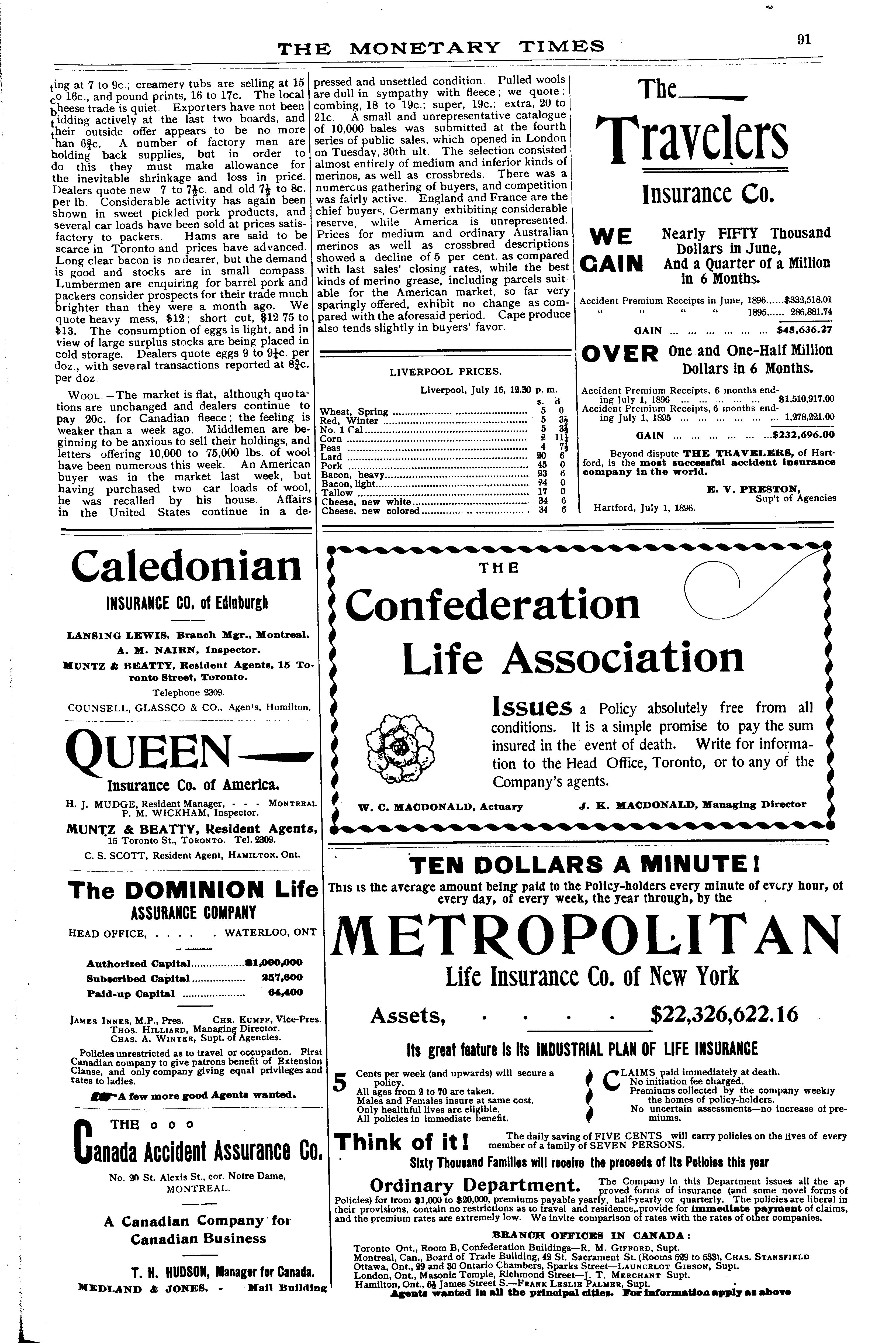 The monetary times, trade review and insurance chronicle : [Vol. 30, no. 3 (July 17, 1896)]