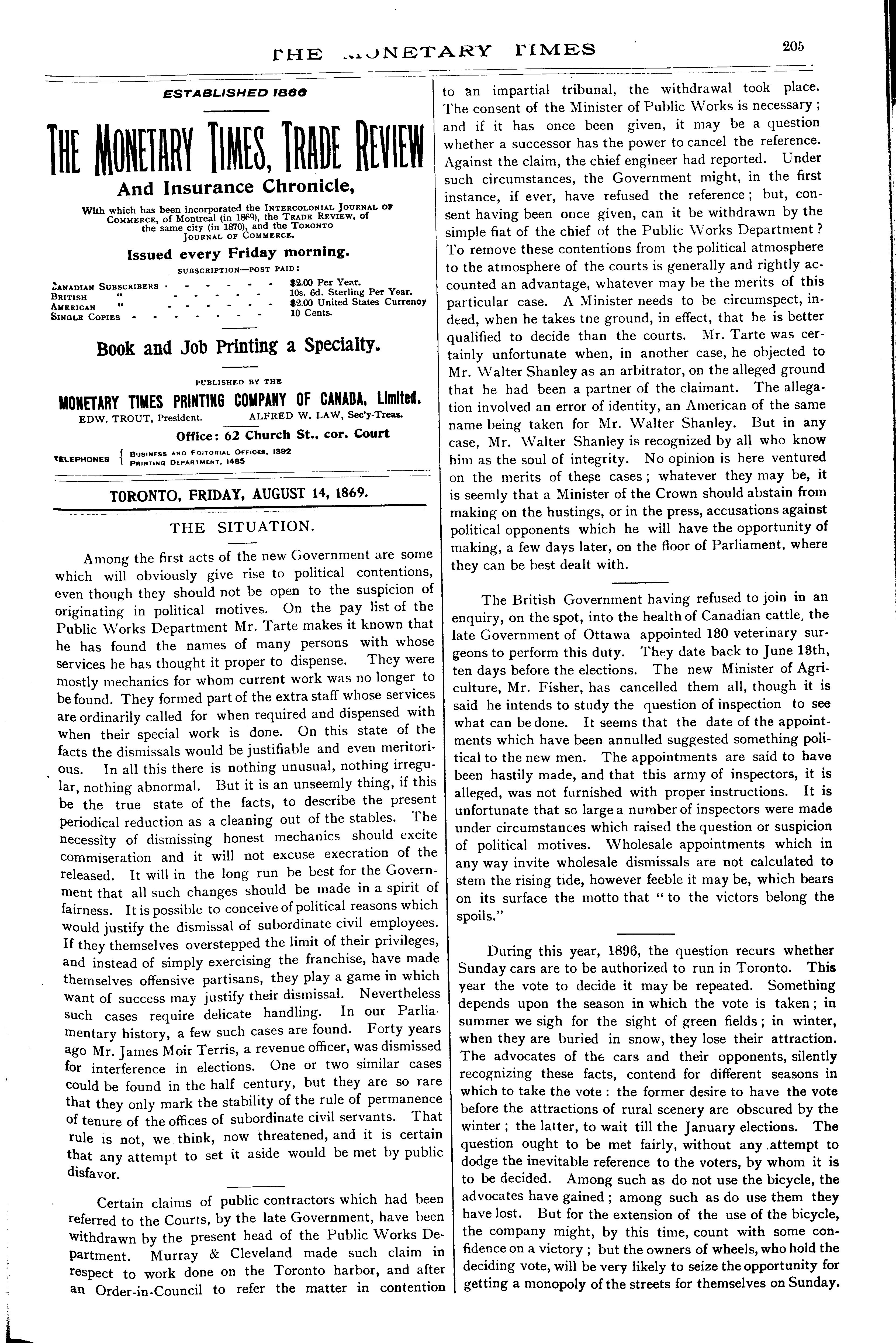 The monetary times, trade review and insurance chronicle : [Vol. 30, no. 7 (Aug. 14, 1896)]