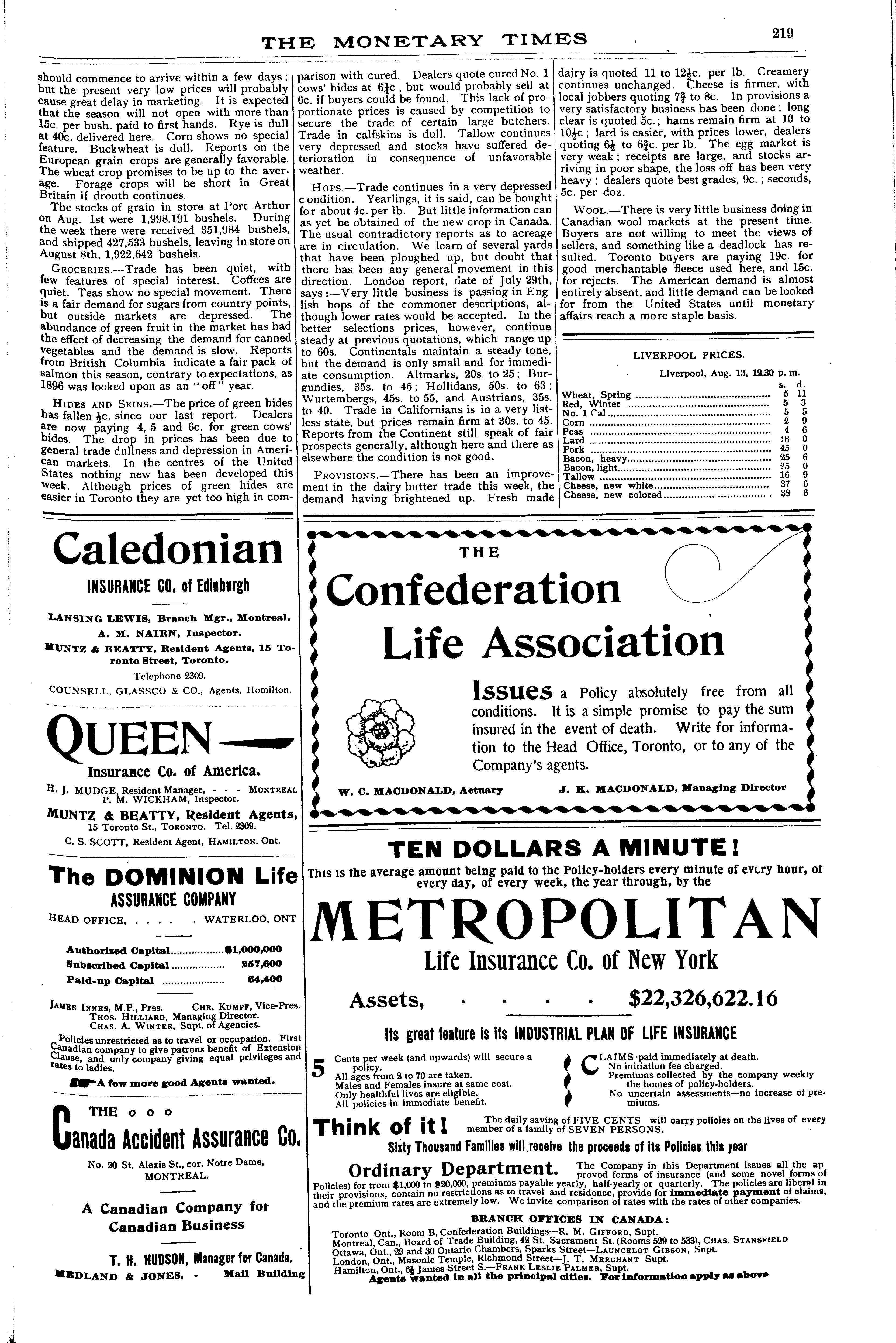 The monetary times, trade review and insurance chronicle : [Vol. 30, no. 7 (Aug. 14, 1896)]