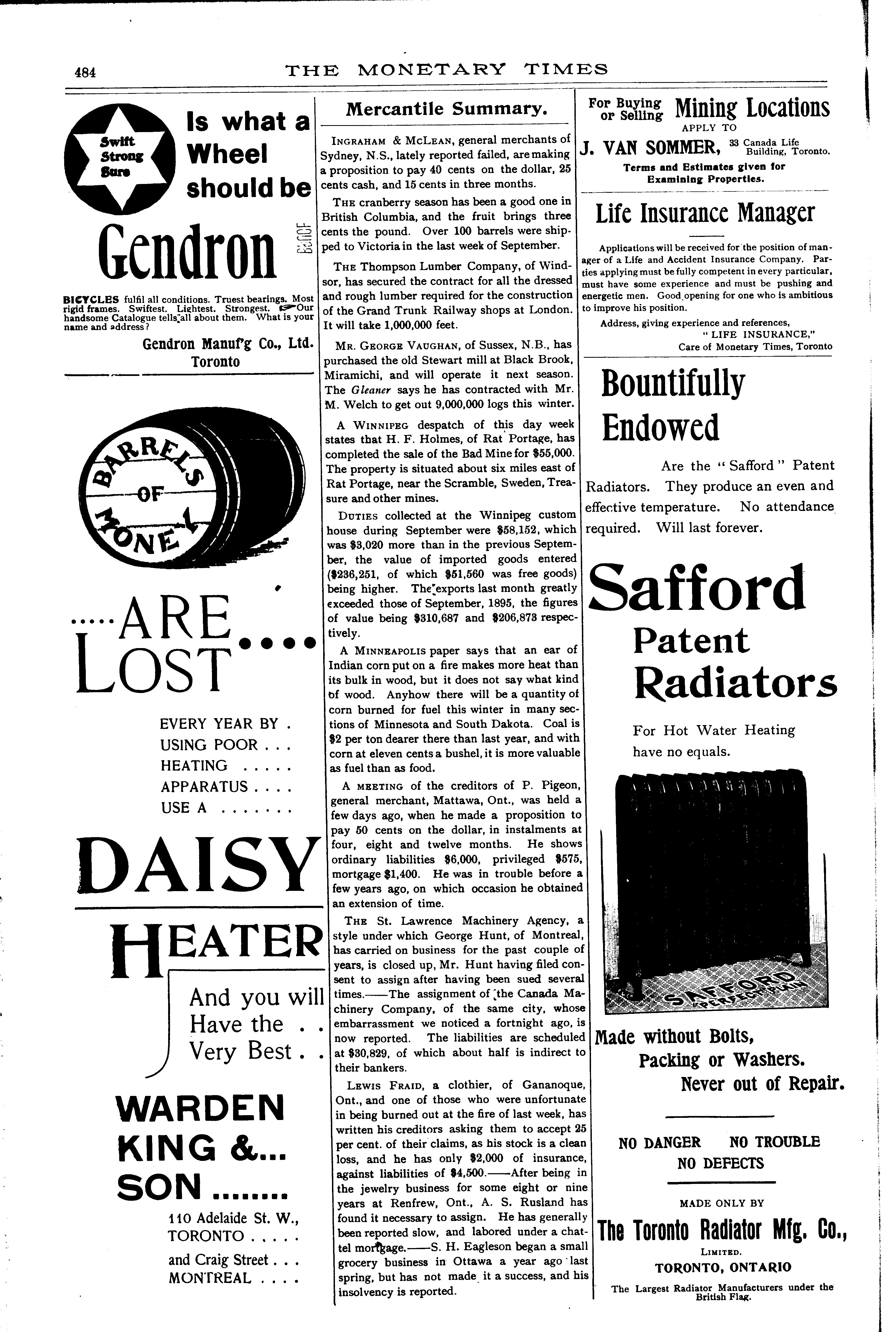 Aide Toronto : Monetary Times Print. Co. of Canada, [1896]; 33 images avec recherche en texte intégral