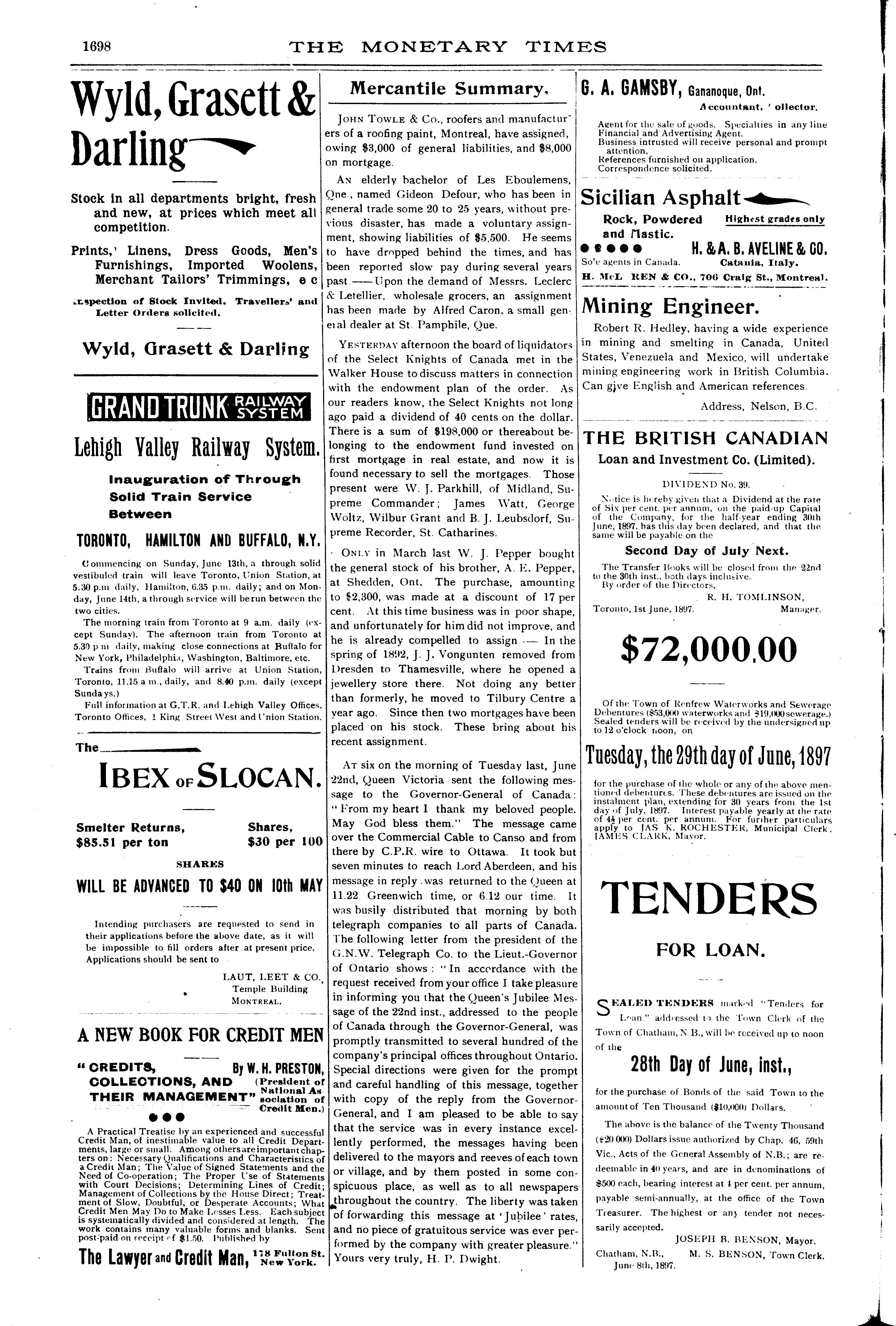 The monetary times, trade review and insurance chronicle [Vol. 30, no. 52 (June 25, 1897)]