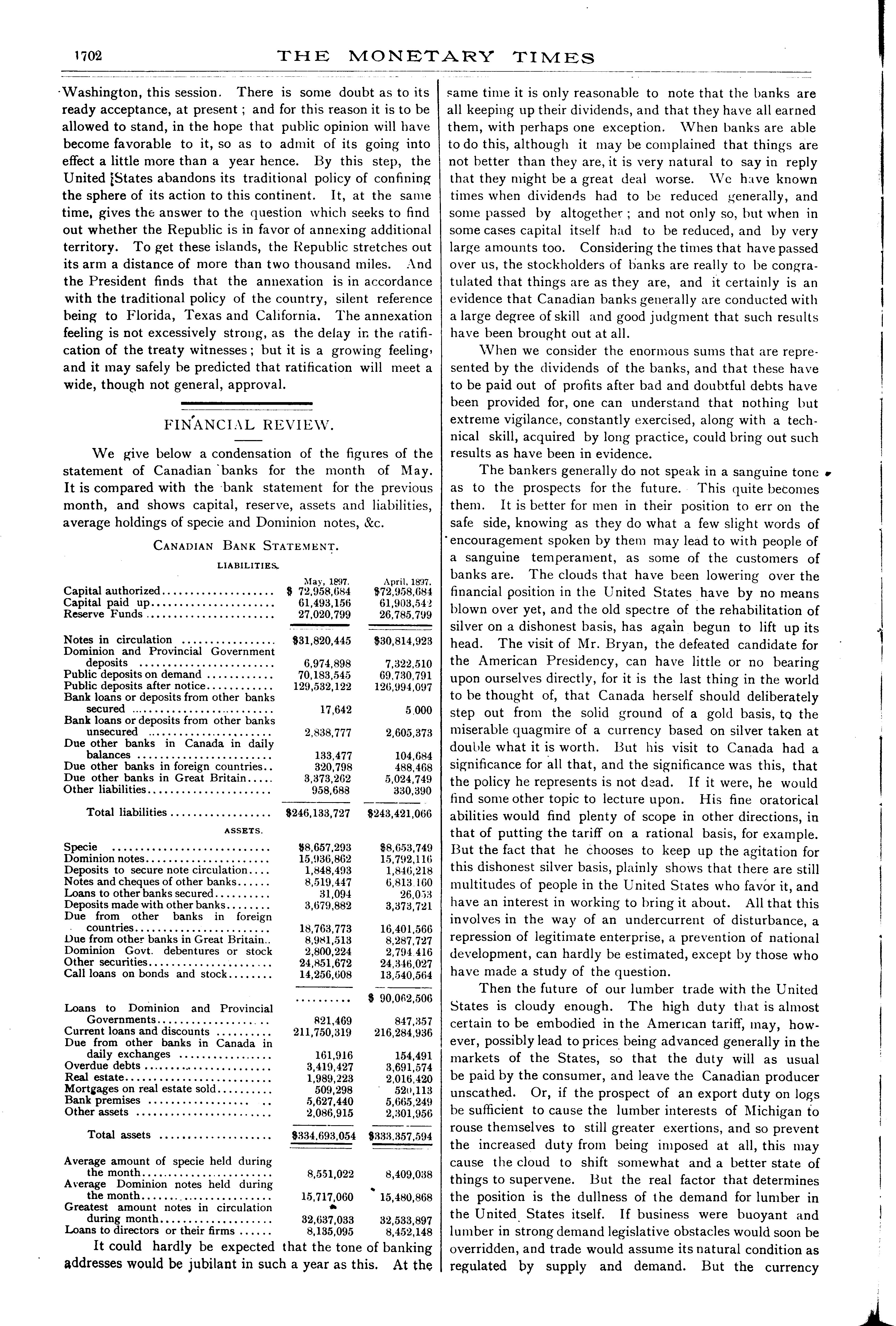 The monetary times, trade review and insurance chronicle : [Vol. 30, no. 52 (June 25, 1897)]
